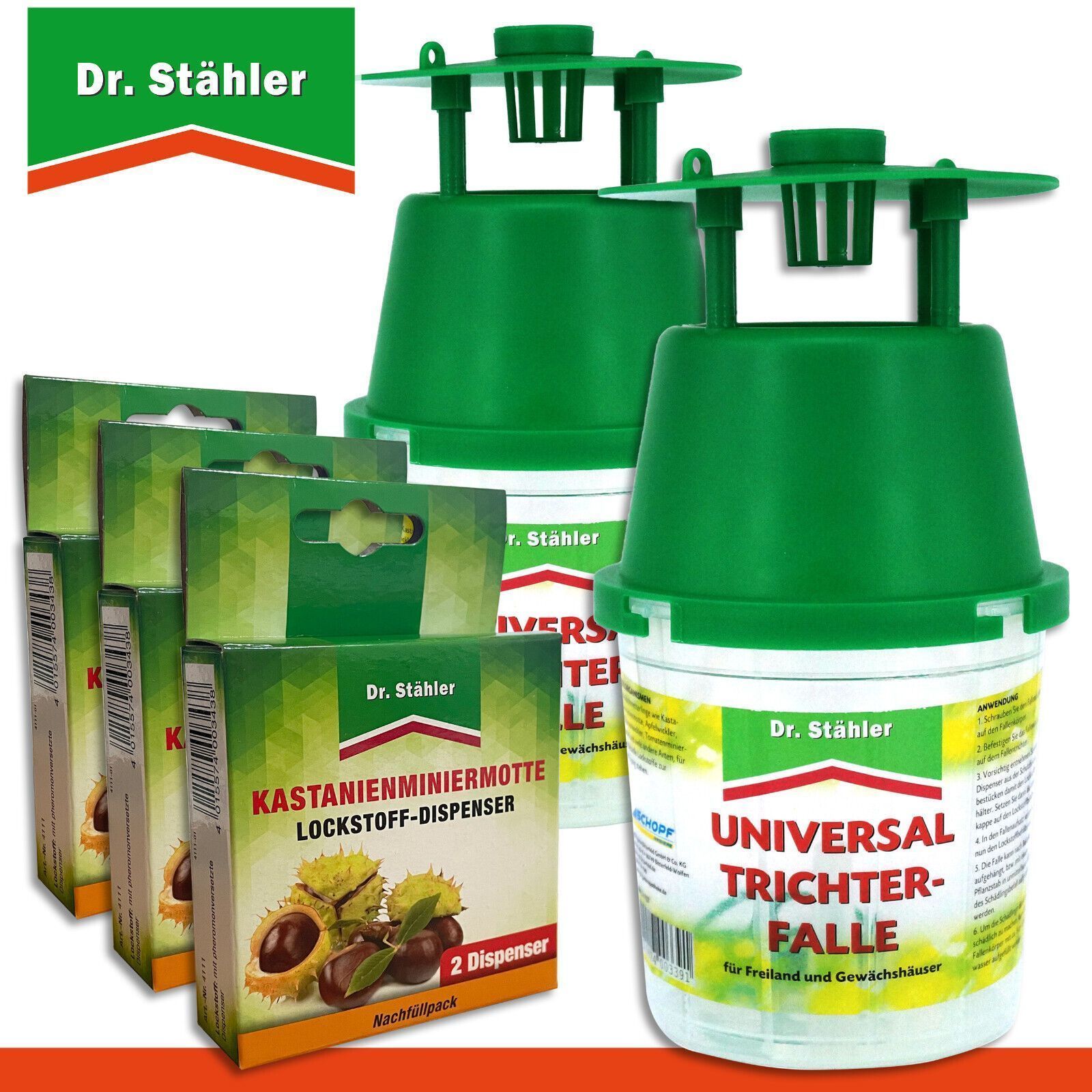 Dr. Stähler 2 Universal-Trichterfalle + 2 x 2 Kastanienminiermotte Lockstoff