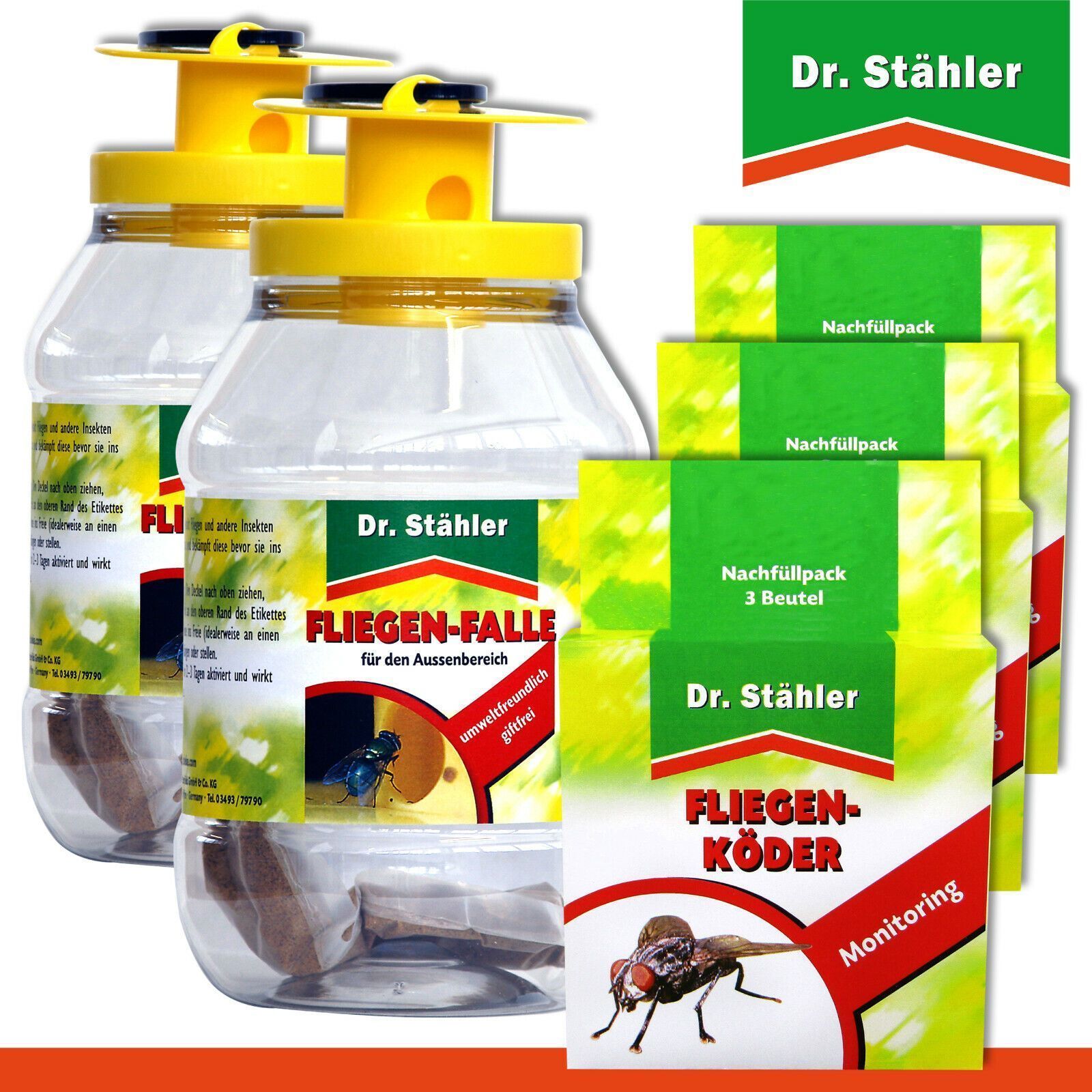 Dr. Stähler 2 x Fliegen-Falle + 3 x 3 Beutel Nachfüllpack FliegenKöder (Gr. Mittel)