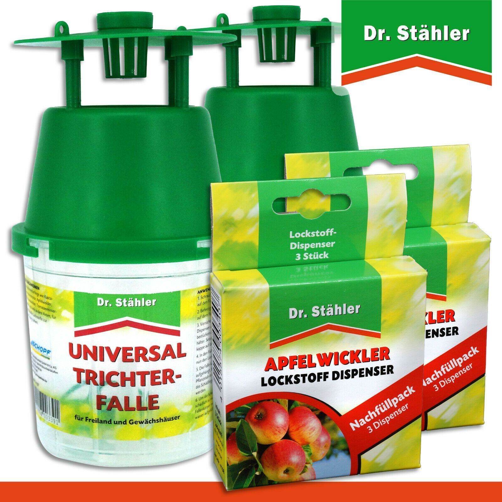 Dr. Stähler 2 x Universal-Trichterfalle + 2 x 3 Apfelwickler Lockstoffdispenser