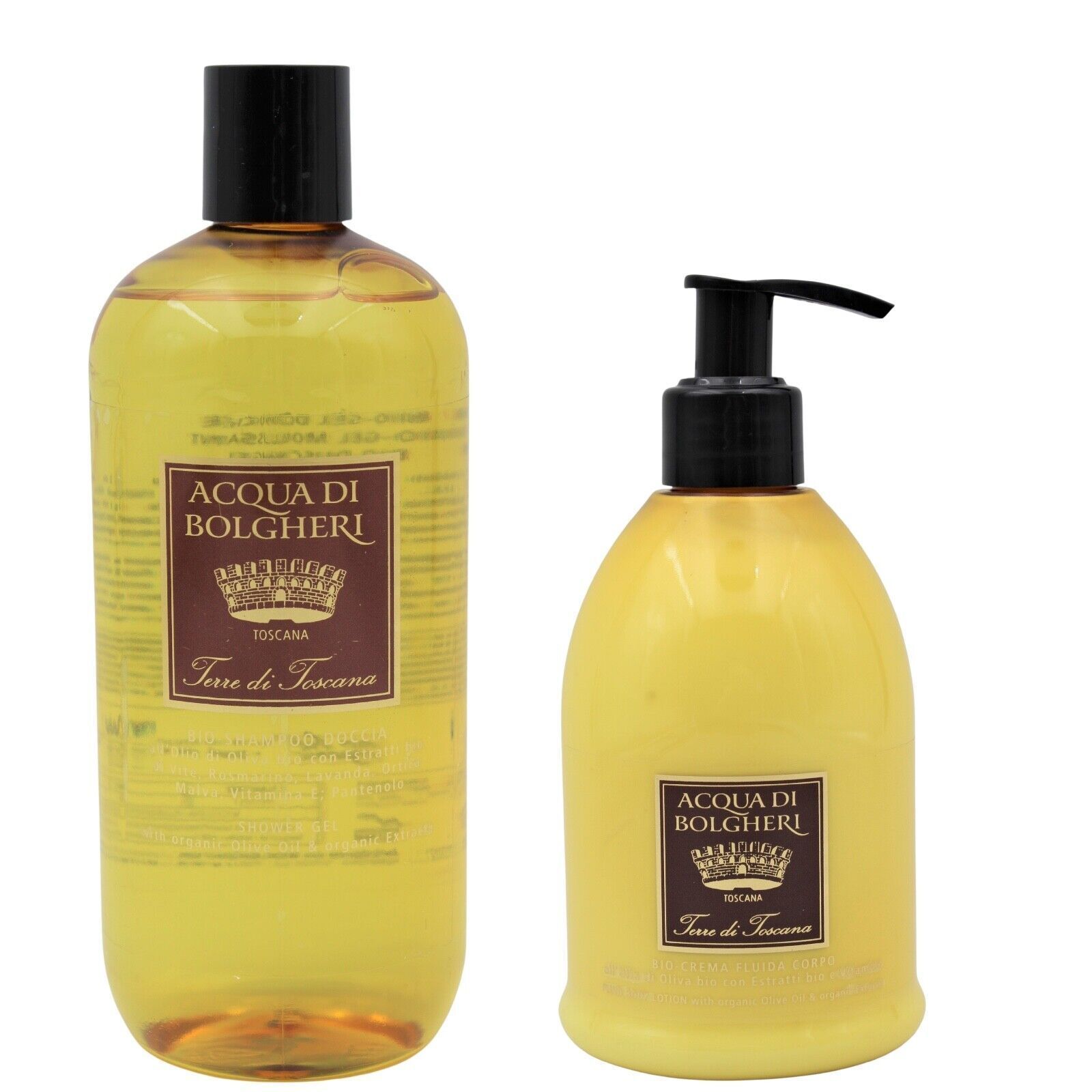 Dr. Taffi Acqua di Bolgheri Terre di Toscana Dusch & Badegel - 500 ml + Bodylotion 300ml Sanftes, biologisches und veganes Bade- und Duschgel mit dem Aqua di Bolgheri Duft Terre die Toscana. Feuchtigkeitsspendendes, antioxidatives Duschgel mit Bio-Olivenöl und Vitamin E. Die Formel auf Basis von Bio