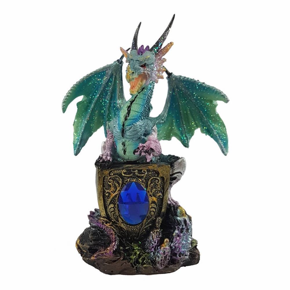 Drache blau mit Kristall (Gr. 14x10x7cm)
