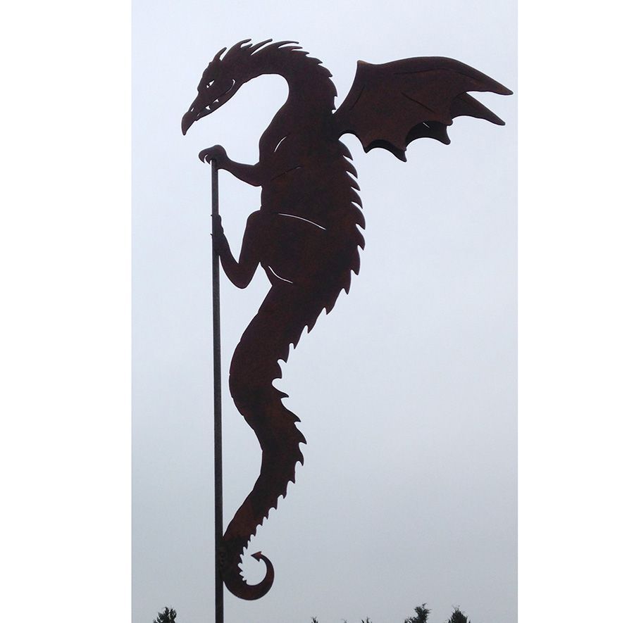 DRACHE DRACO an Stange kletternd Doppelflügel 28x115cm Edelrost Rost Gartenstecker