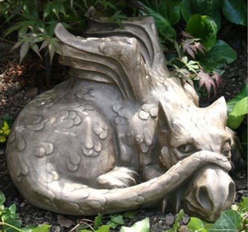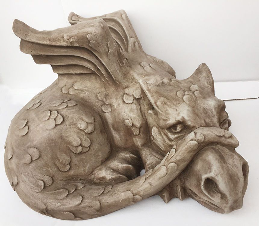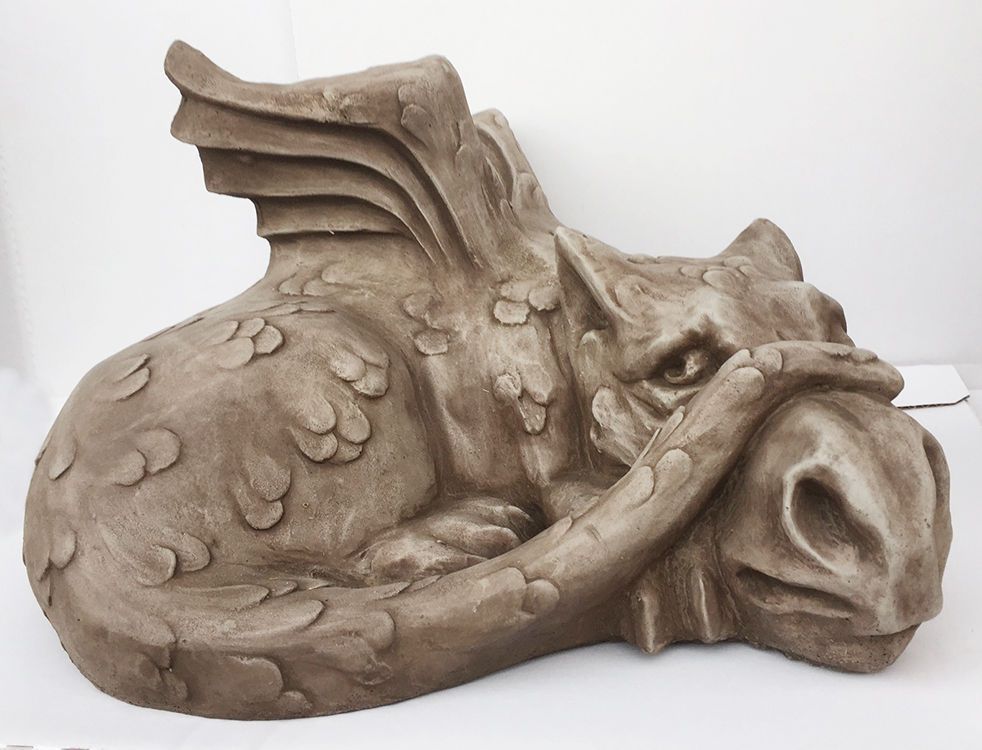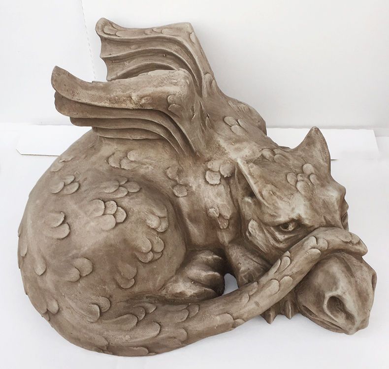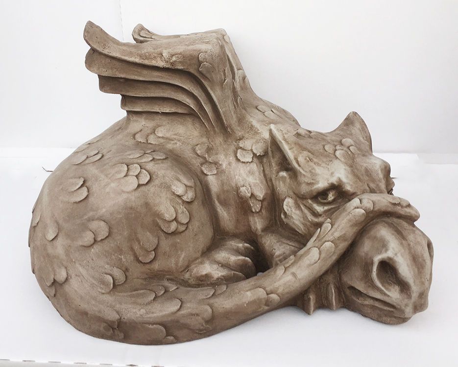 Drache OLD SMUG blinzelnd L42cm Skulptur Steinfigur Steinguss Vidroflor F. Scott
