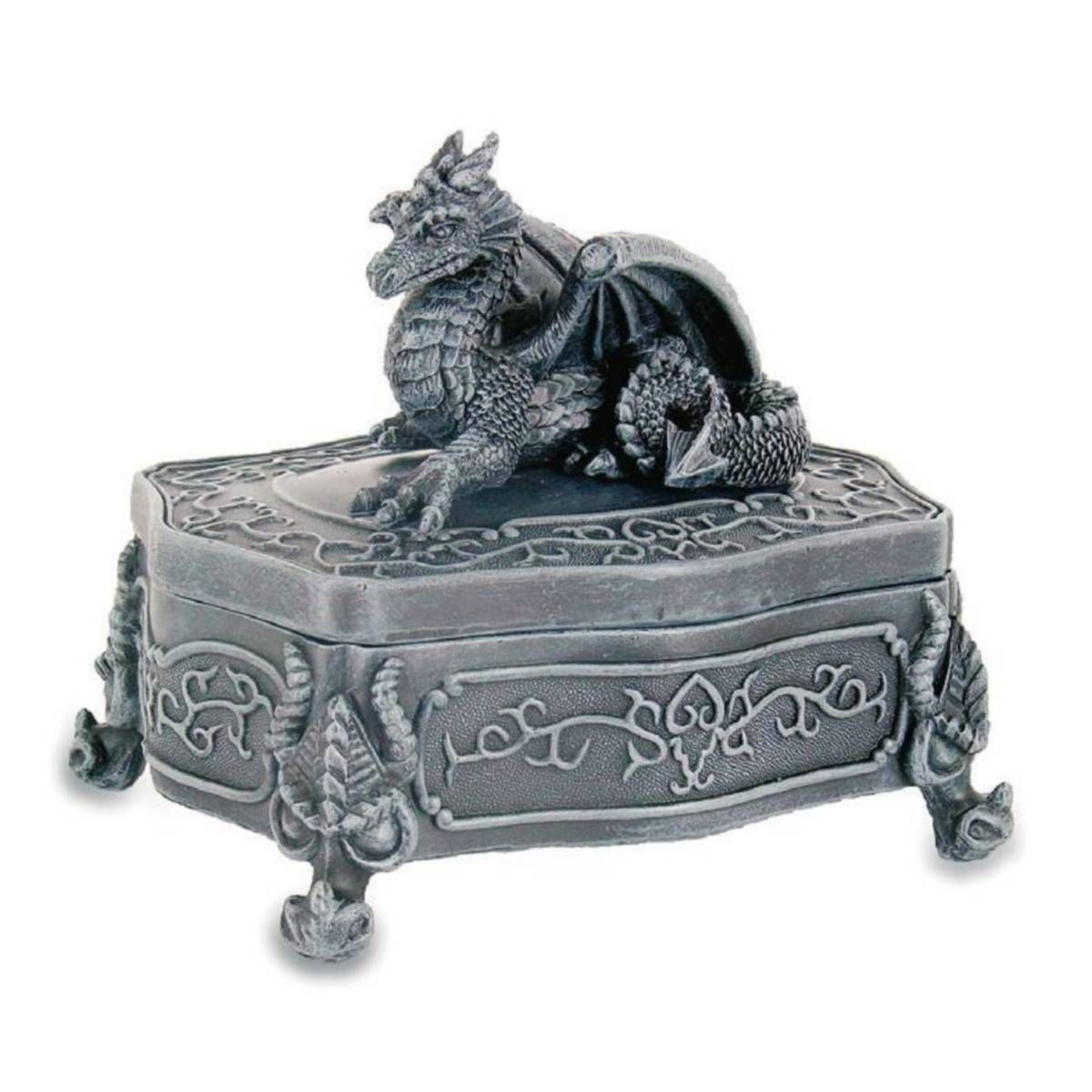 Drache sitzt auf verzierter Schatulle-Schmuckdose
