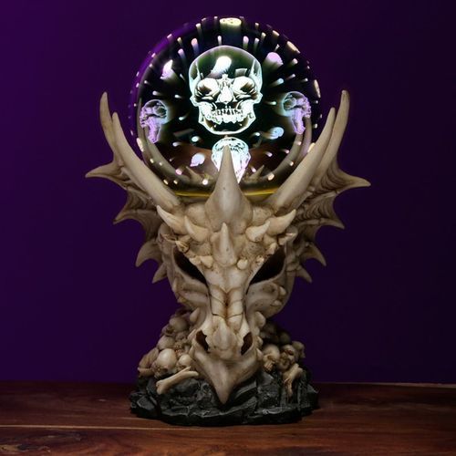 Drache mit LED Farbwechsel 3-D Glas und Totenkopf