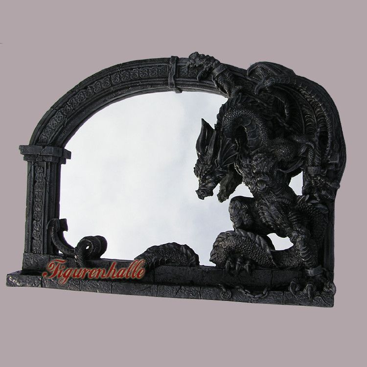 Drachen Wandspiegel Figur Drache Wanddekoration Gothic Düster Figur Wandfigur Möbel