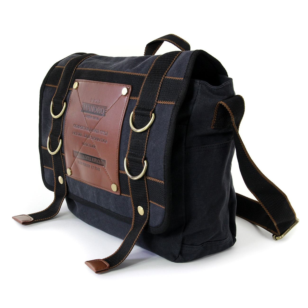 Hier ist eine wunderschöne Manoro Marken-Umhängetasche Messenger Bag für Herren Jugend in der Farbe schwarz. Diese trendige Tasche ist aus Canvas und wird mit Deckelklappe Reißverschluss verschlossen.