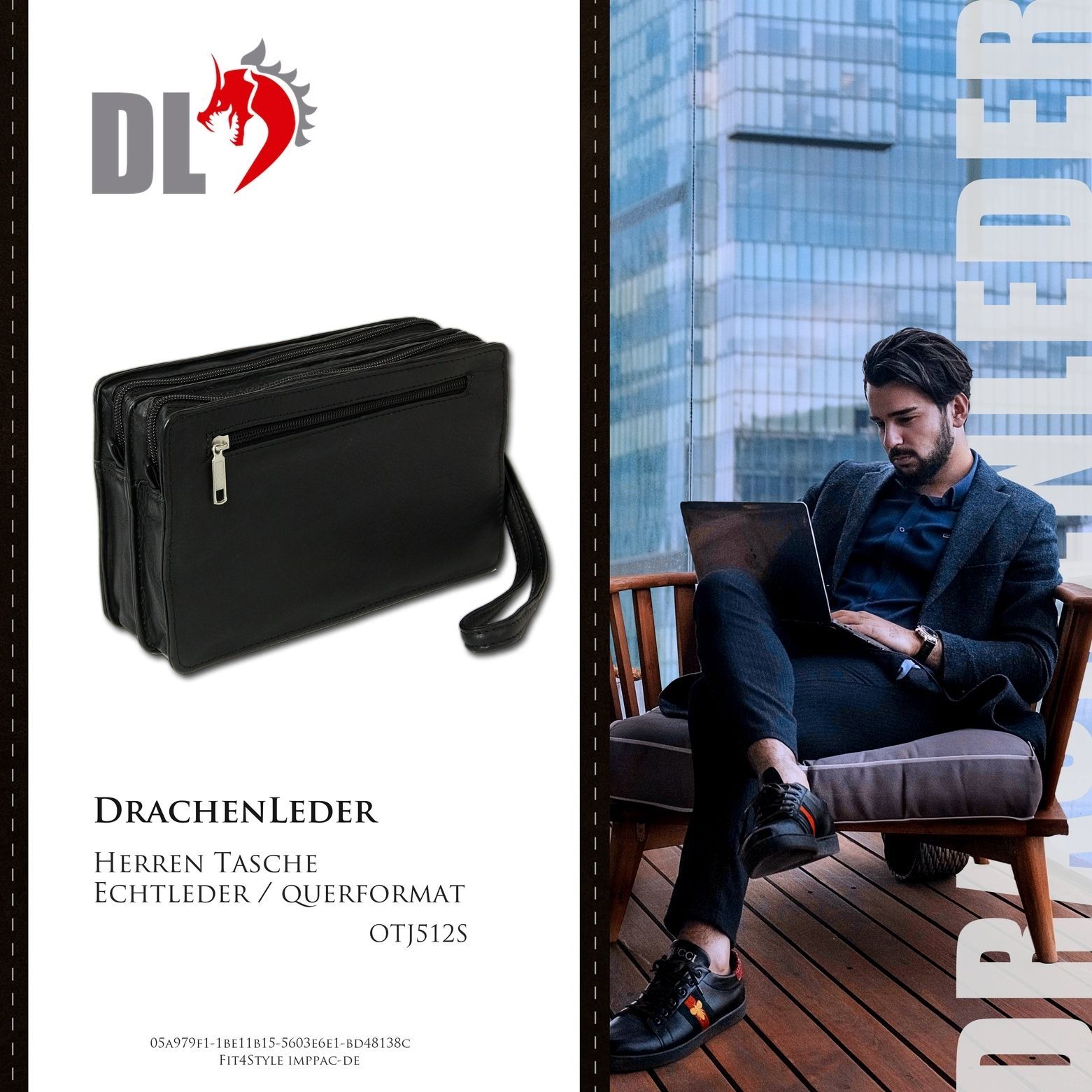DrachenLeder Echtleder Geldbörse Herren Handgelenktasche schwarz 20x12x7 OTJ512S