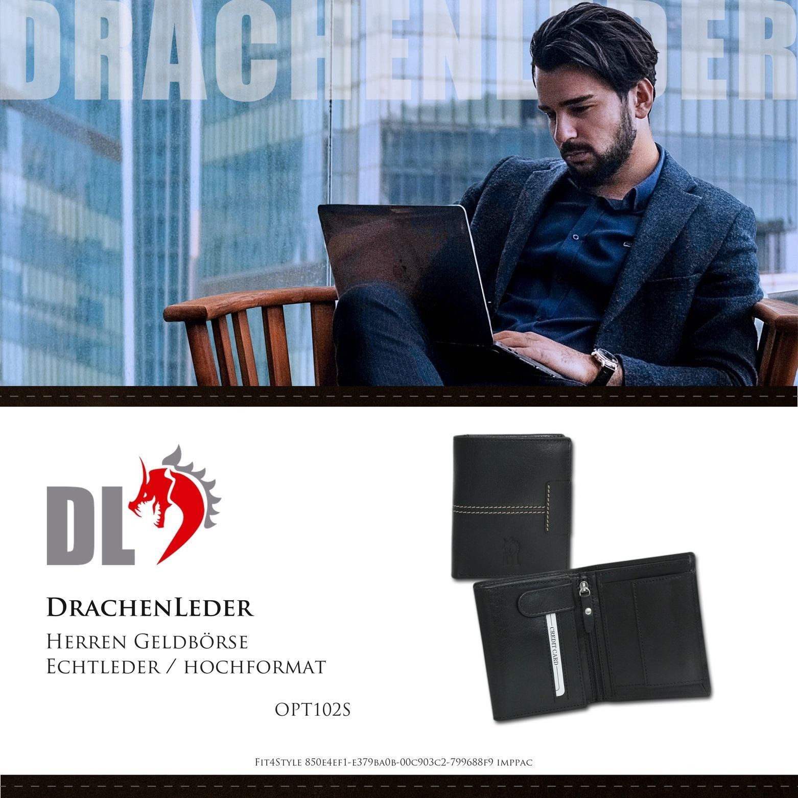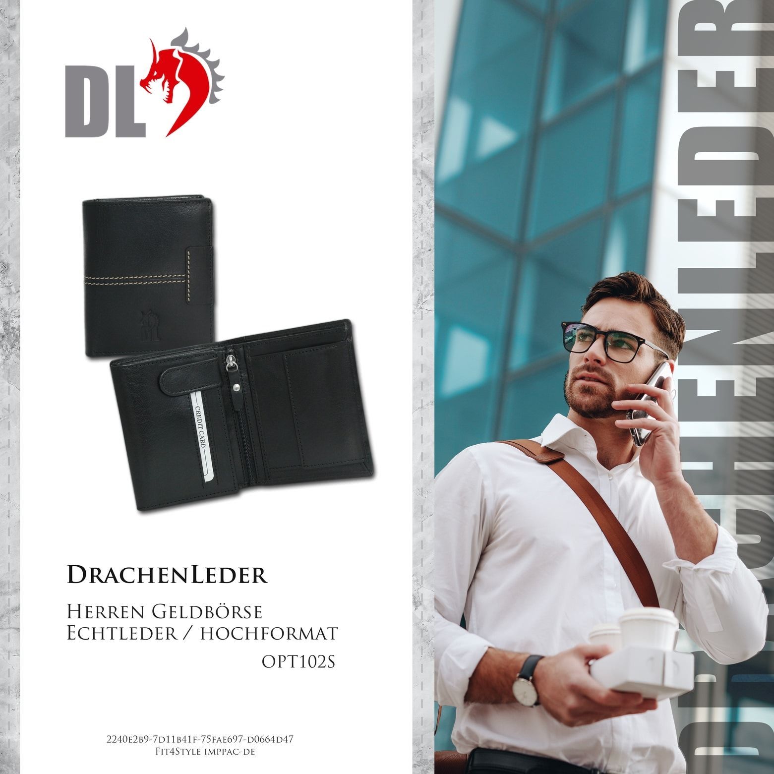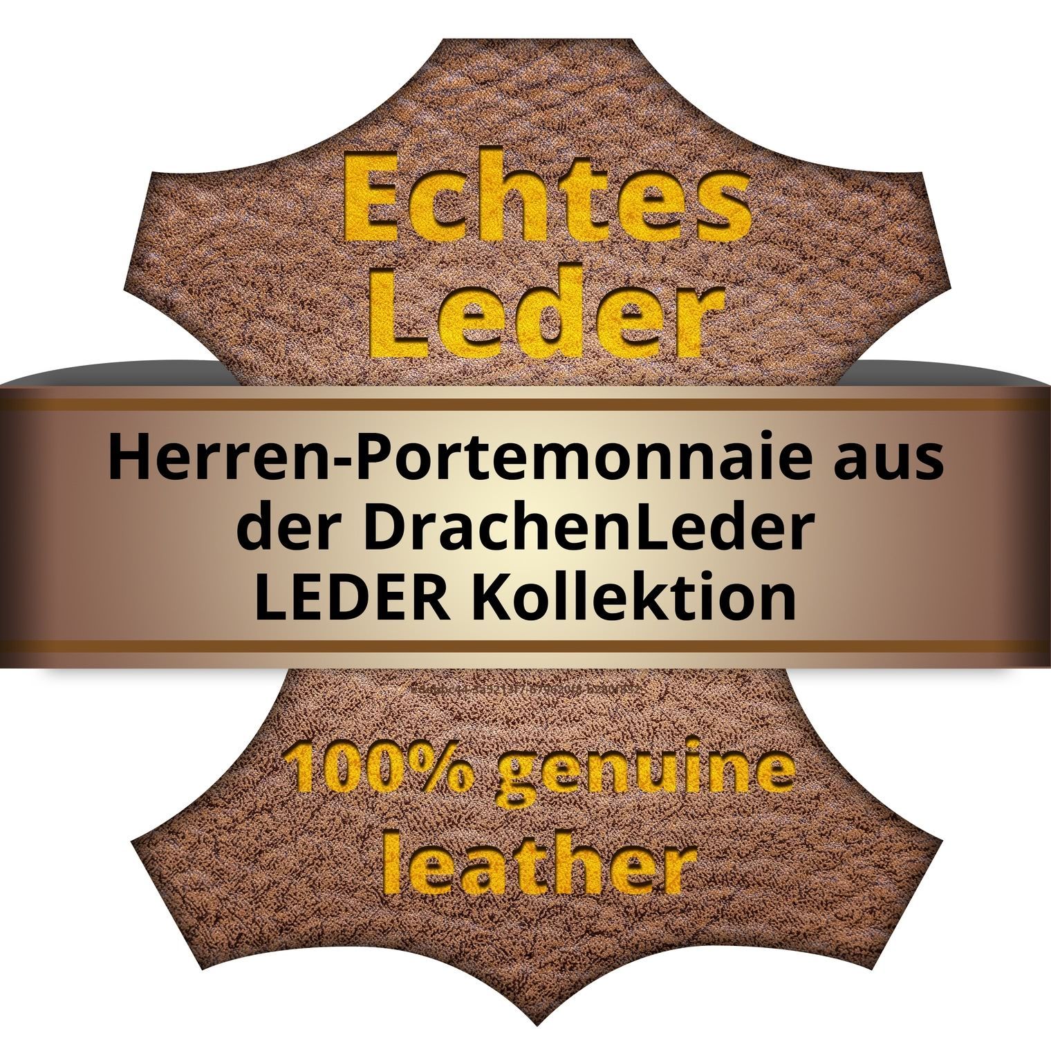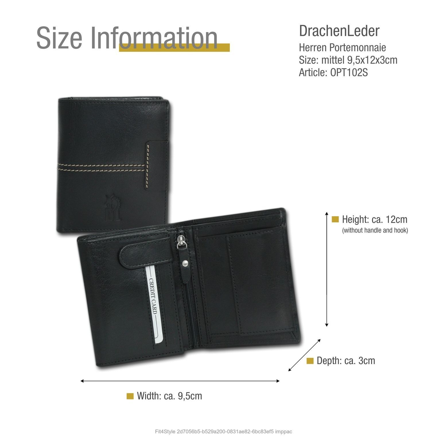 DrachenLeder Echtleder Herren Portemonnaie Geldbörse schwarz 9,5x12x3cm OPT102S