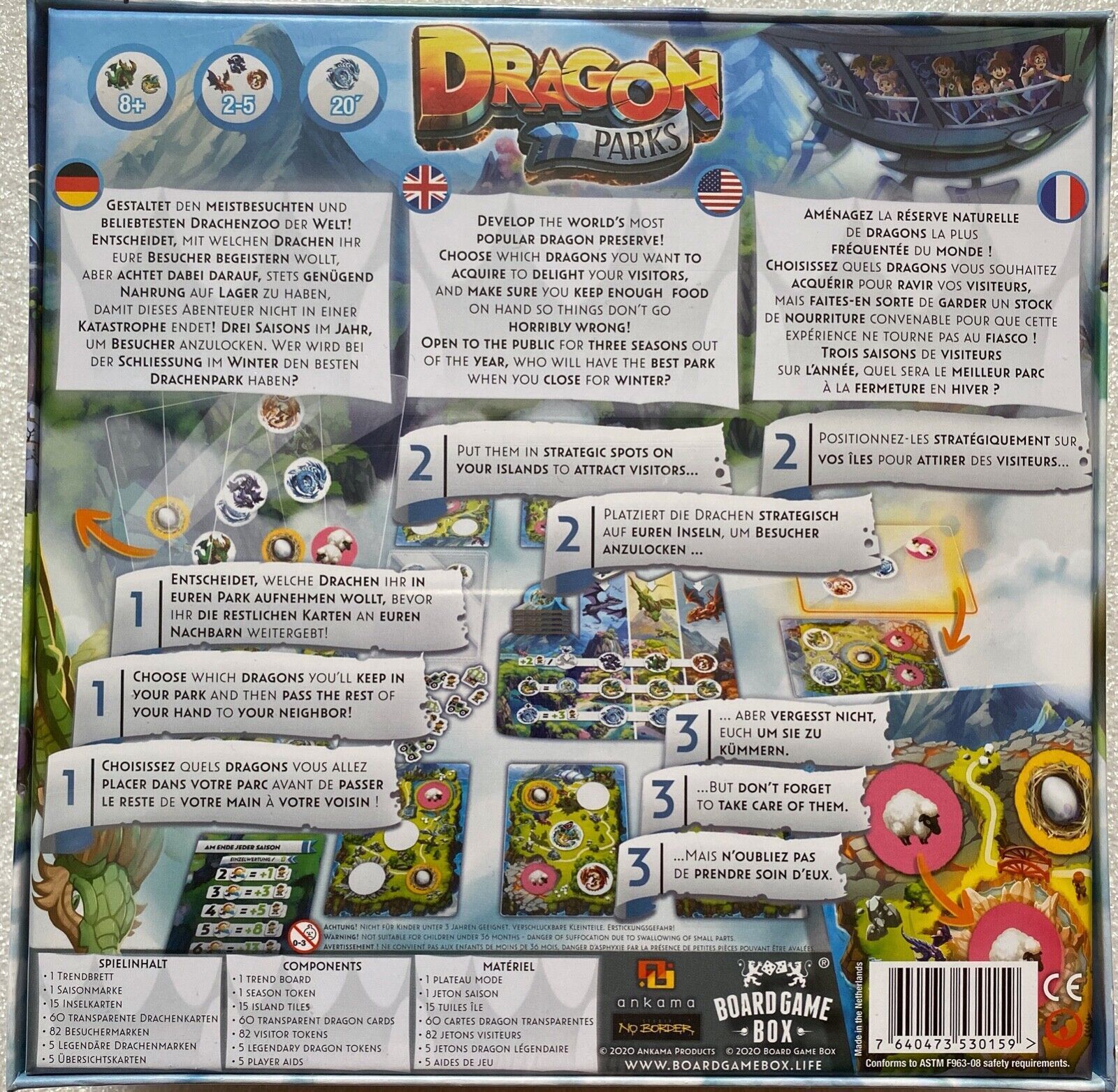Dragon Parks Board Game Box Kartenspiel Familienspiel Legespiel Fantasyspiel Neu