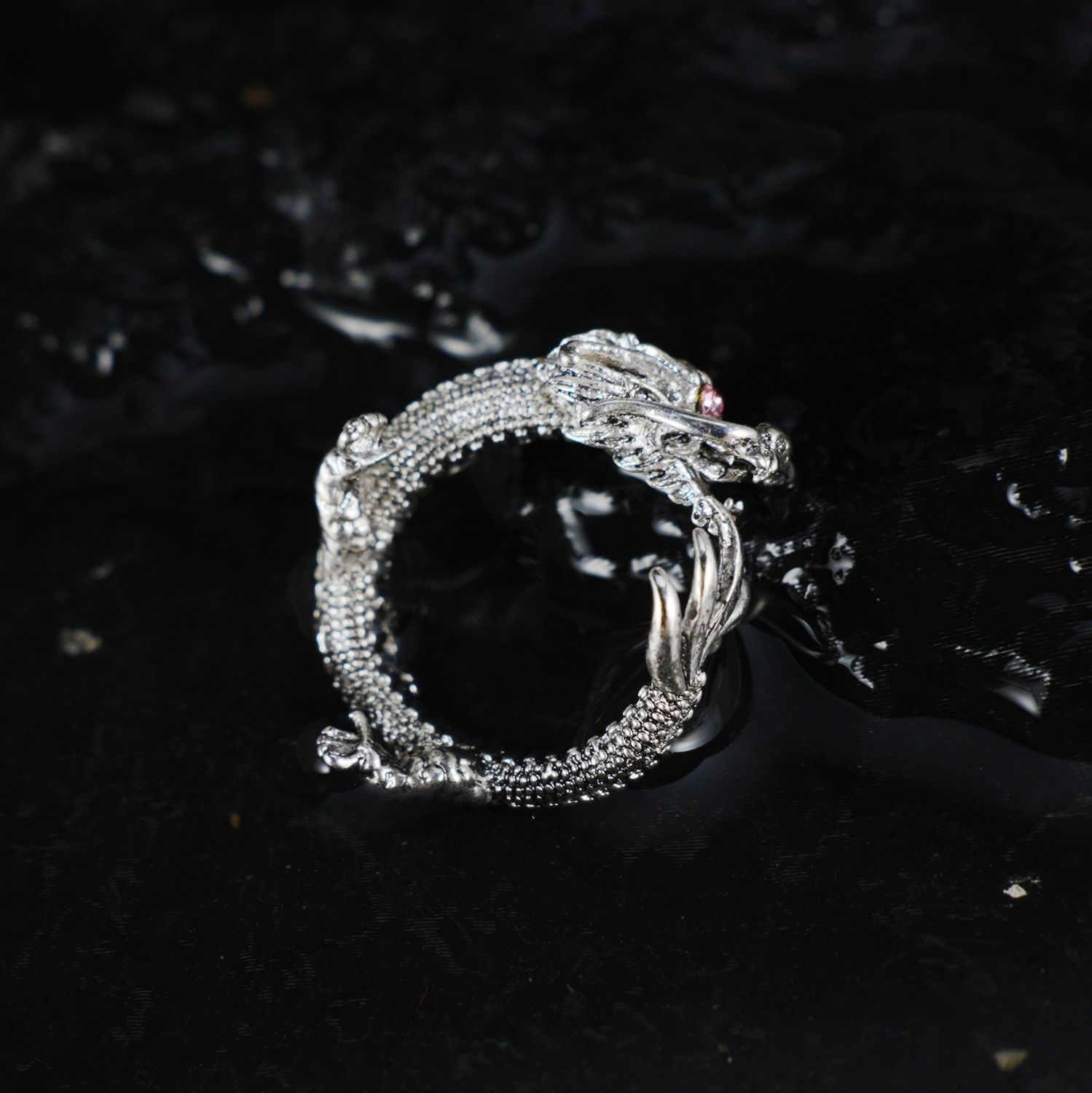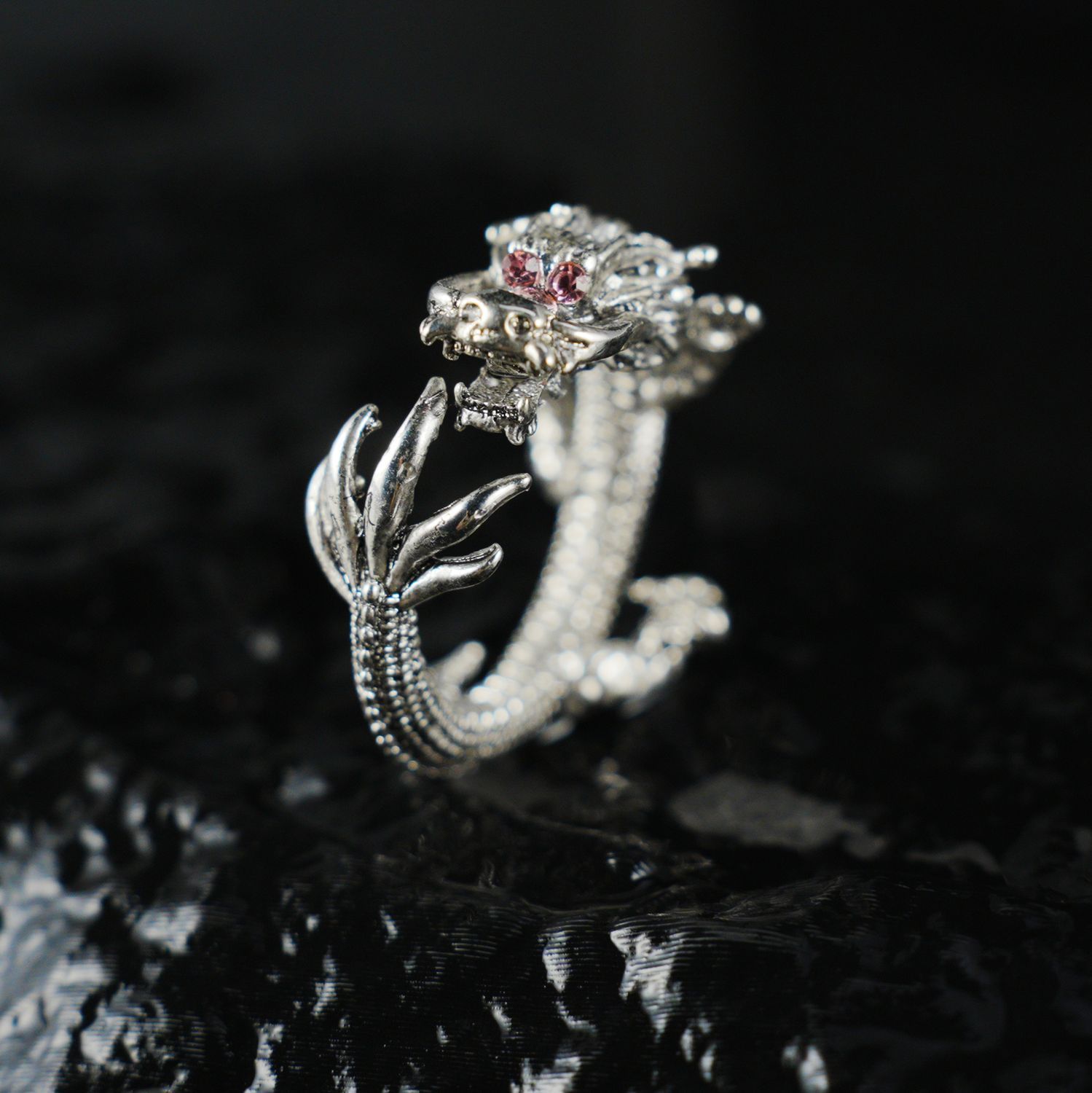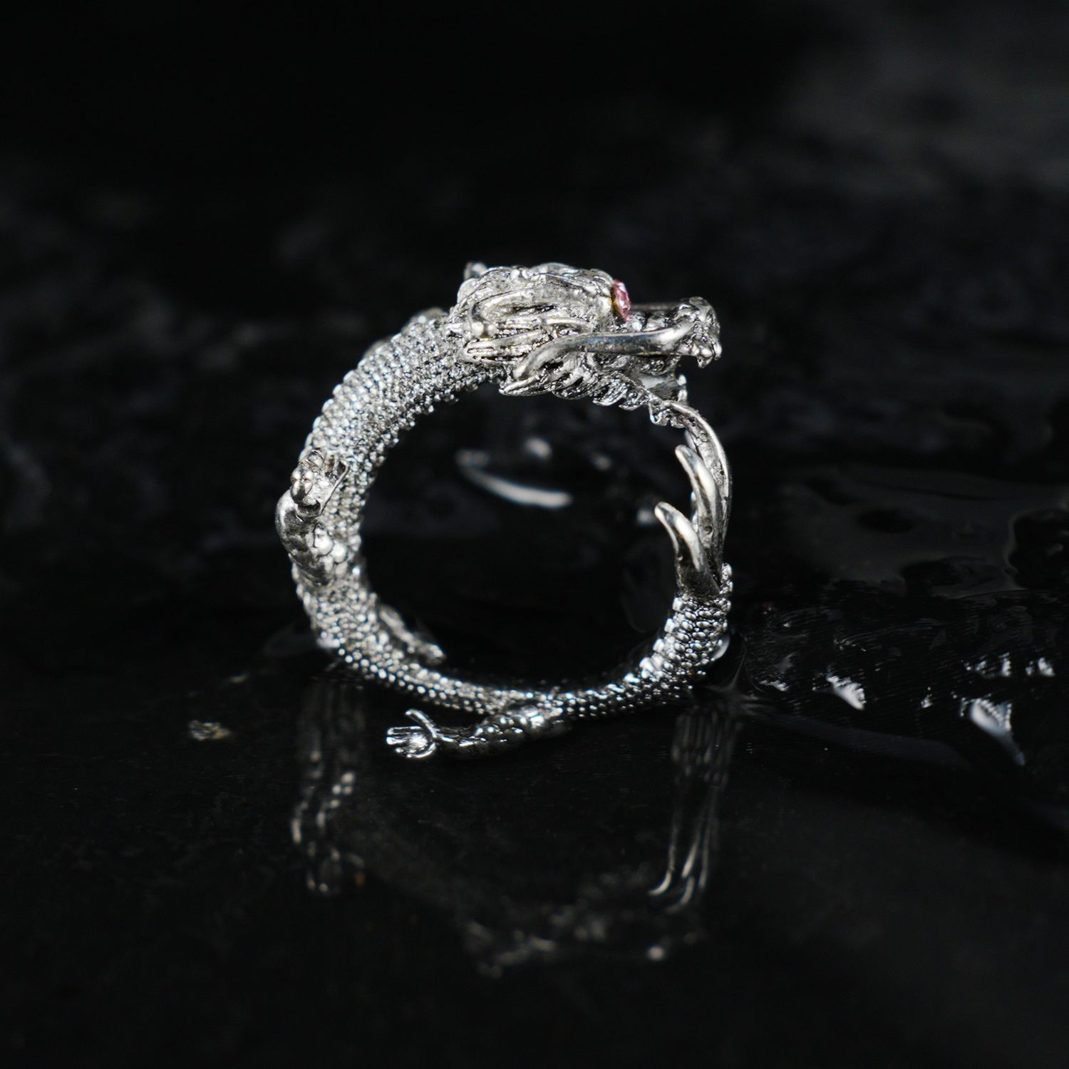 Dragon Ring, Vintage Sculpted Dragon Jewelry, Totem Protection Amulet, Fantasy Gift f