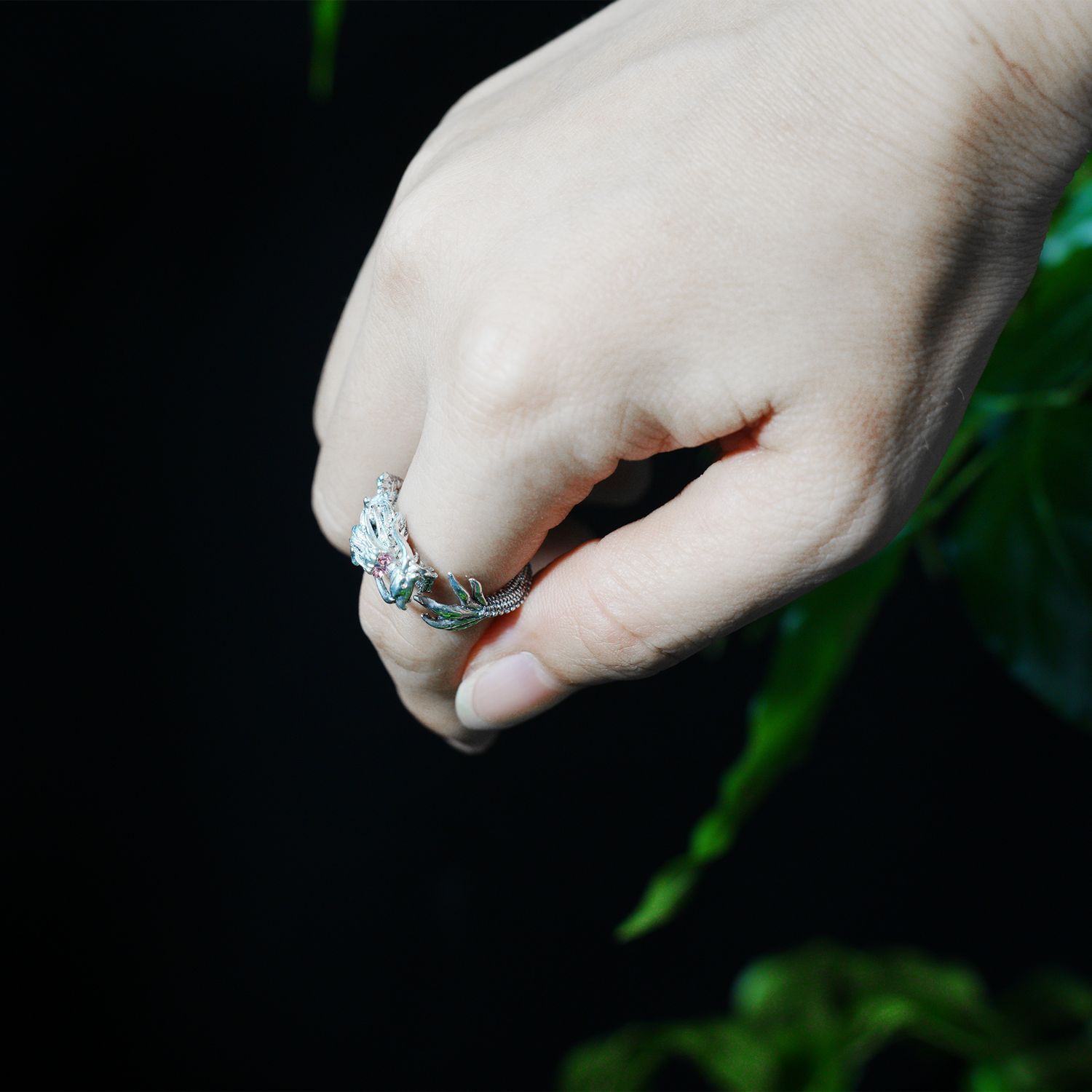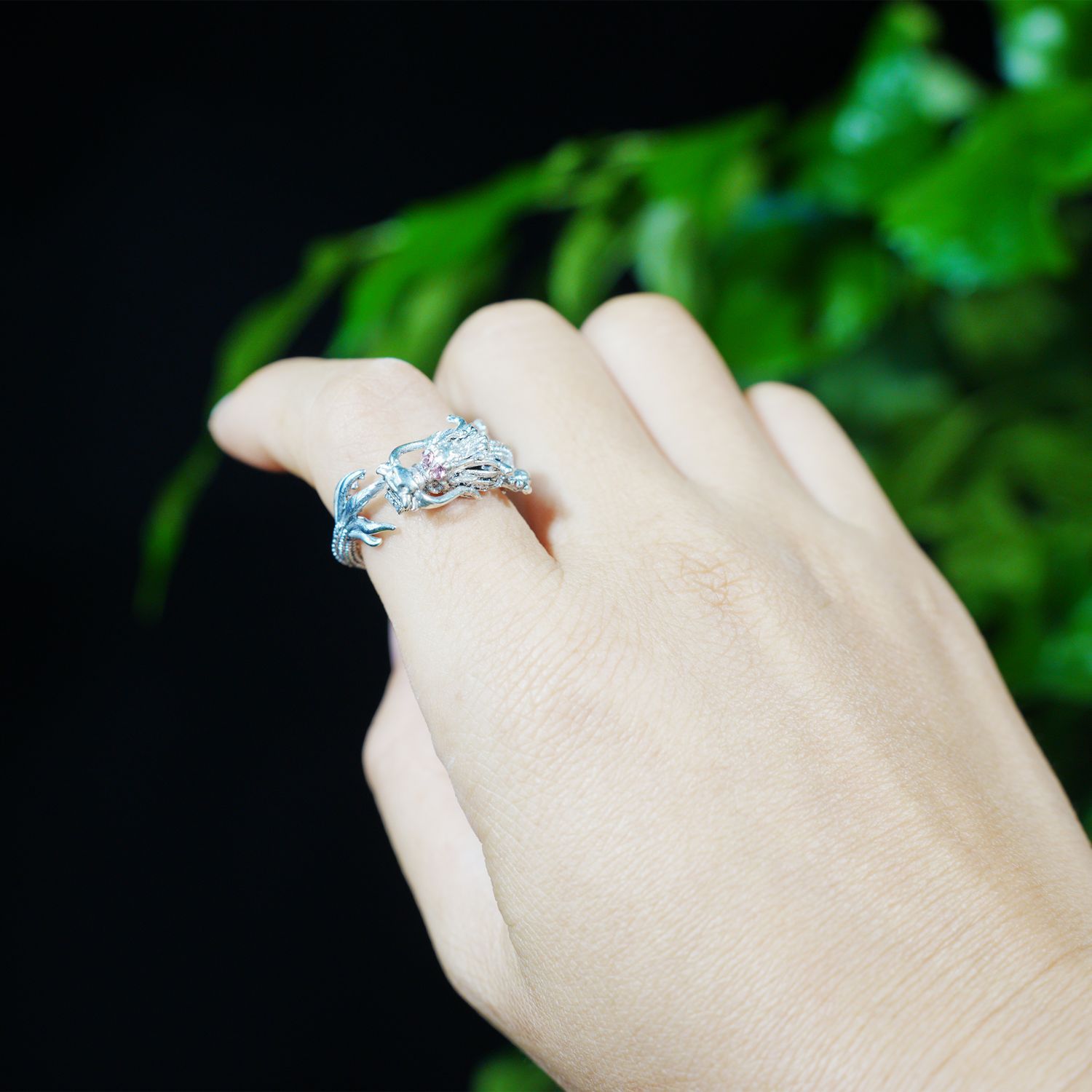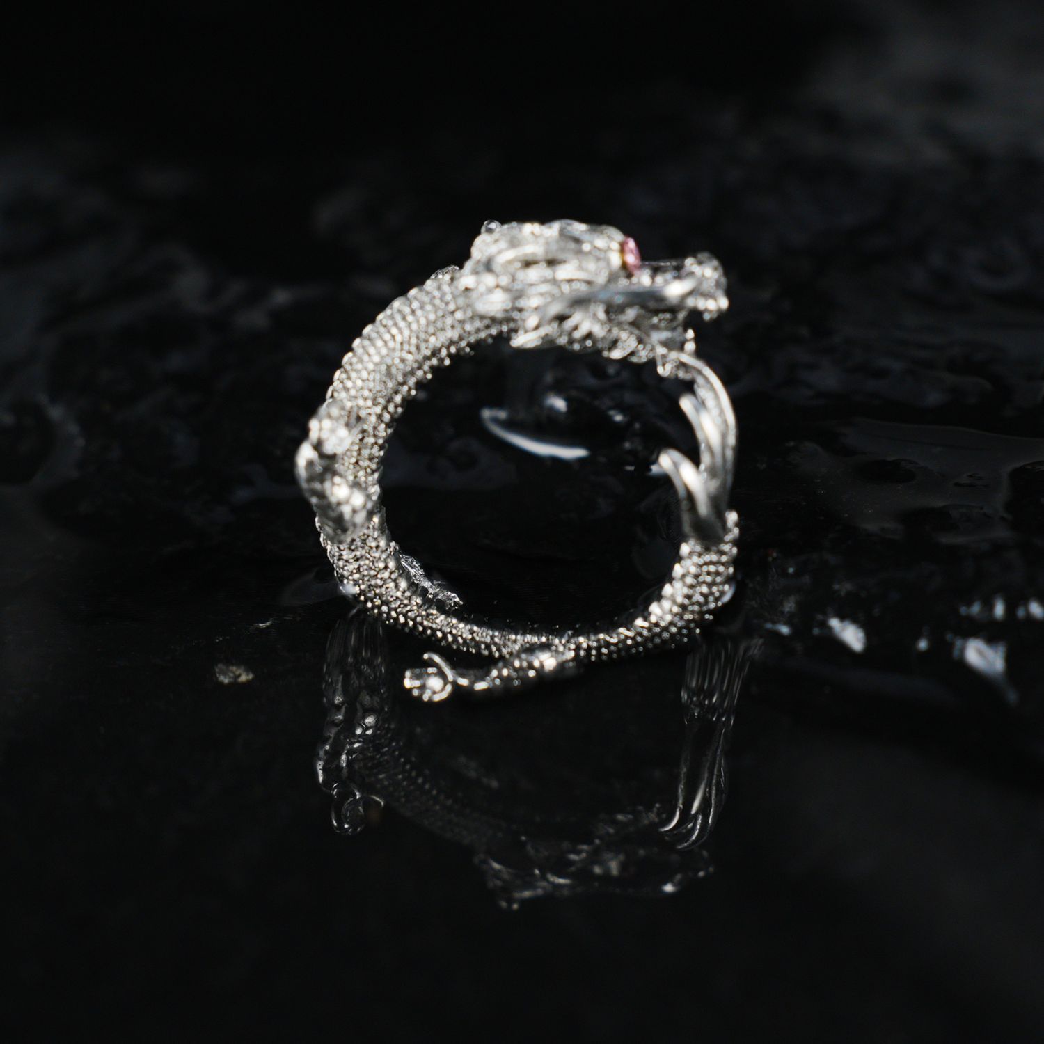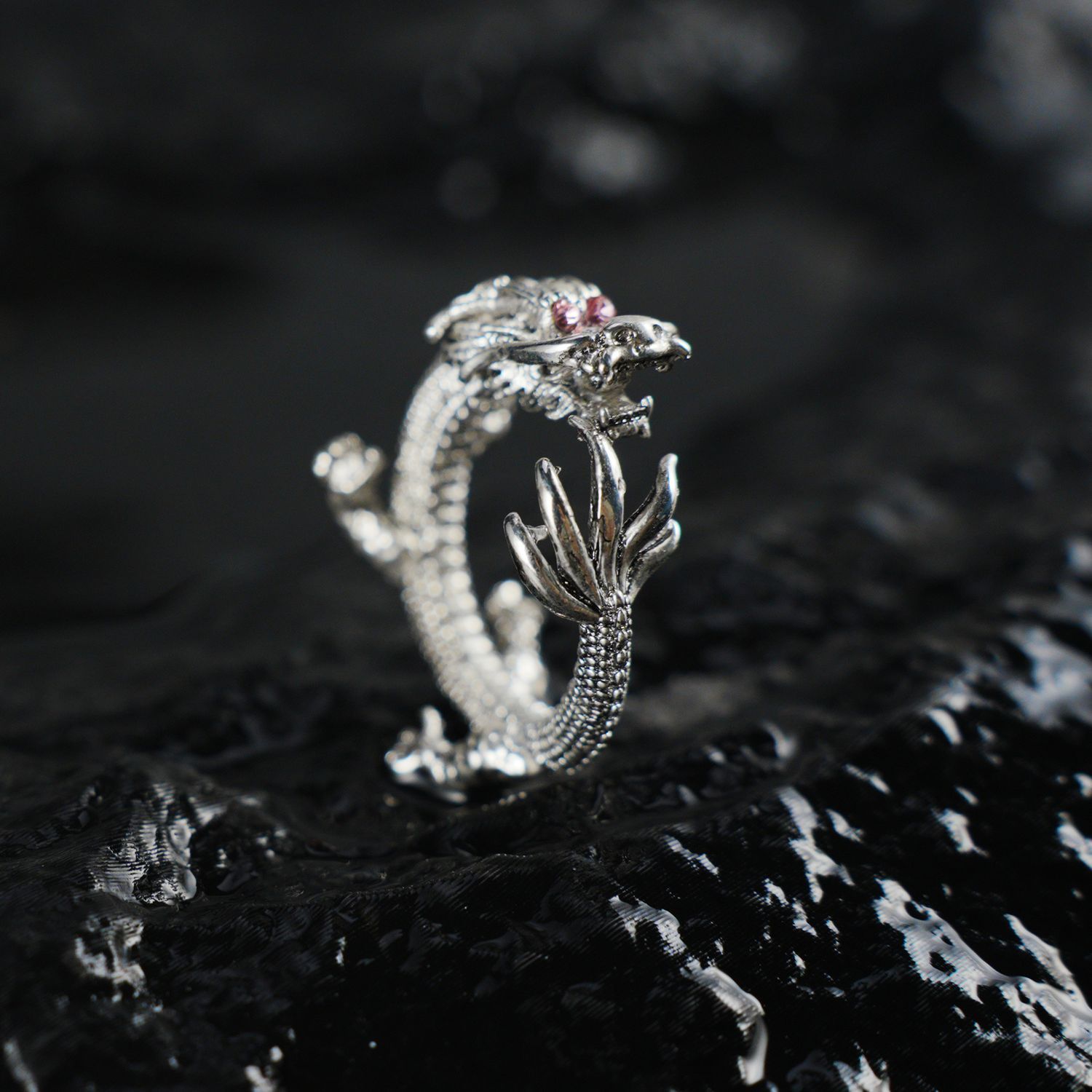 Dragon Ring, Vintage Sculpted Dragon Jewelry, Totem Protection Amulet, Fantasy Gift f