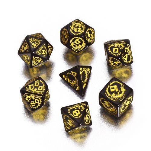 Q-Workshop Dragons Würfel - 7 Stück - schwarz und gelb