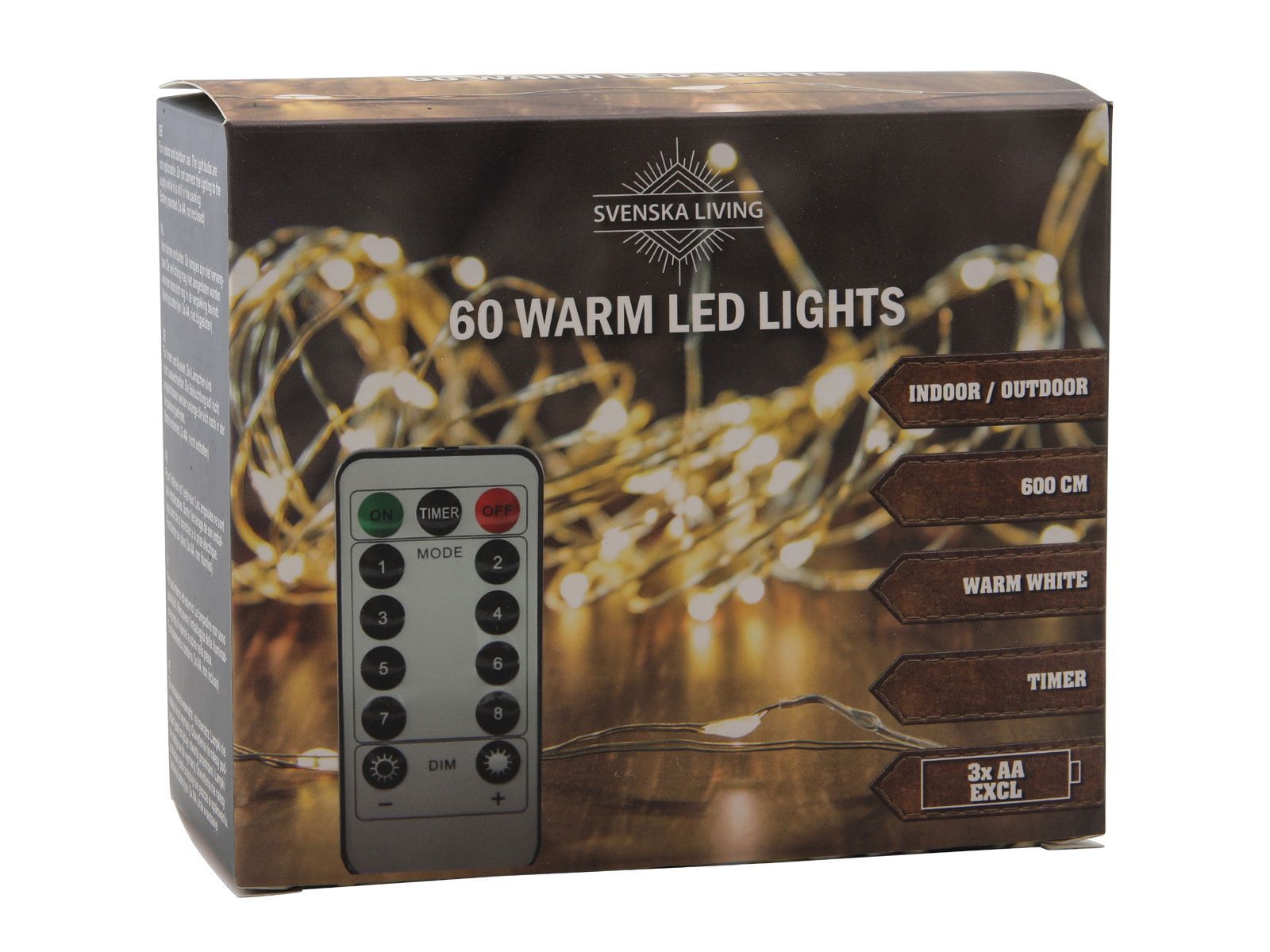 Drahtbeleuchtung 60 LED / 600cm / Timer / 8 Funktionen - Micro Batterie Lichterkette