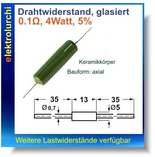 Drahtwiderstand 0,1 Ohm, 4 Watt, 5% Widerstand Hochlast, 5St.