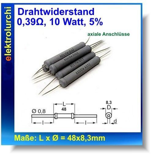 Drahtwiderstand 0,39 Ohm, 10 Watt, 5% Widerstand Hochlast, 2St.
