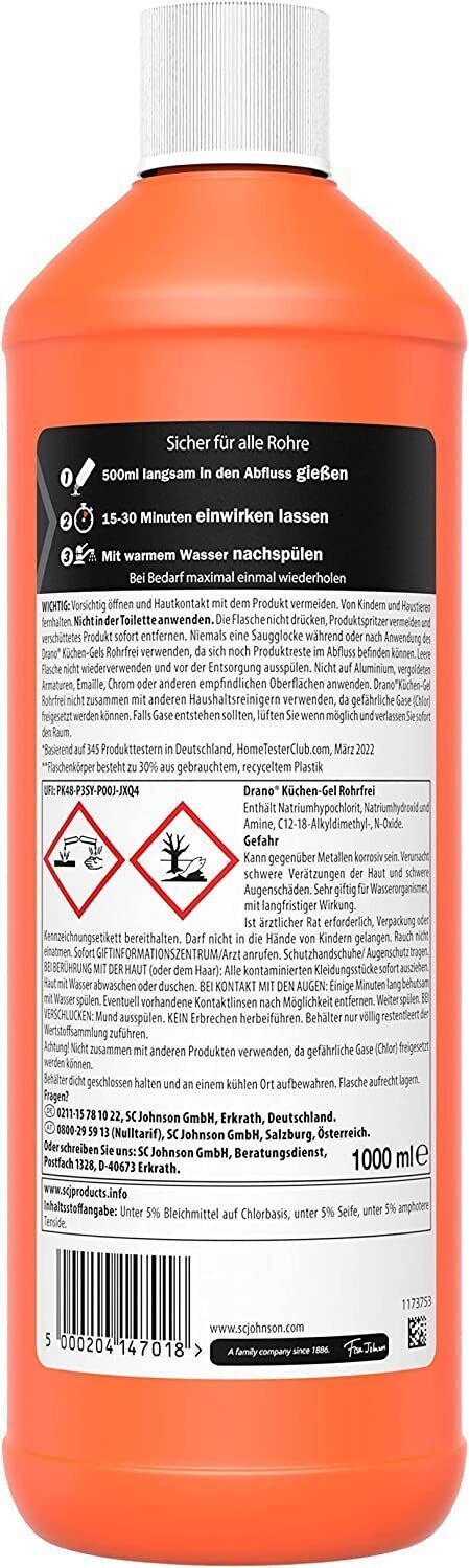Drano Kéchen-Gel Rohrfrei Abflussreiniger Rohrreiniger Kéche Verstopfungen 1 L