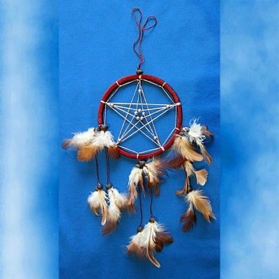 Dreamcatcher Pentagramm D: 11,5 cm Traumfänger mit Federn 4 Farben z. Ausw