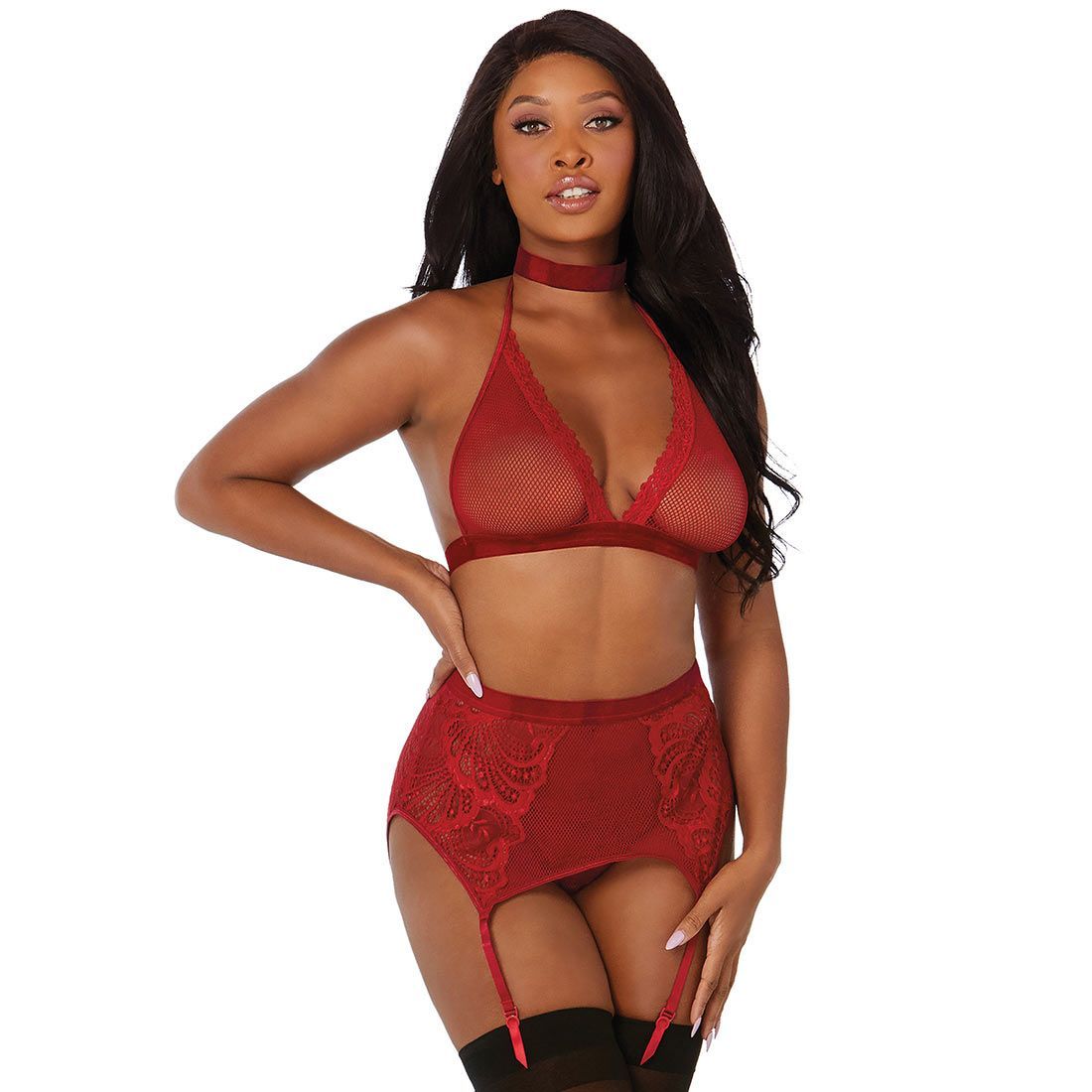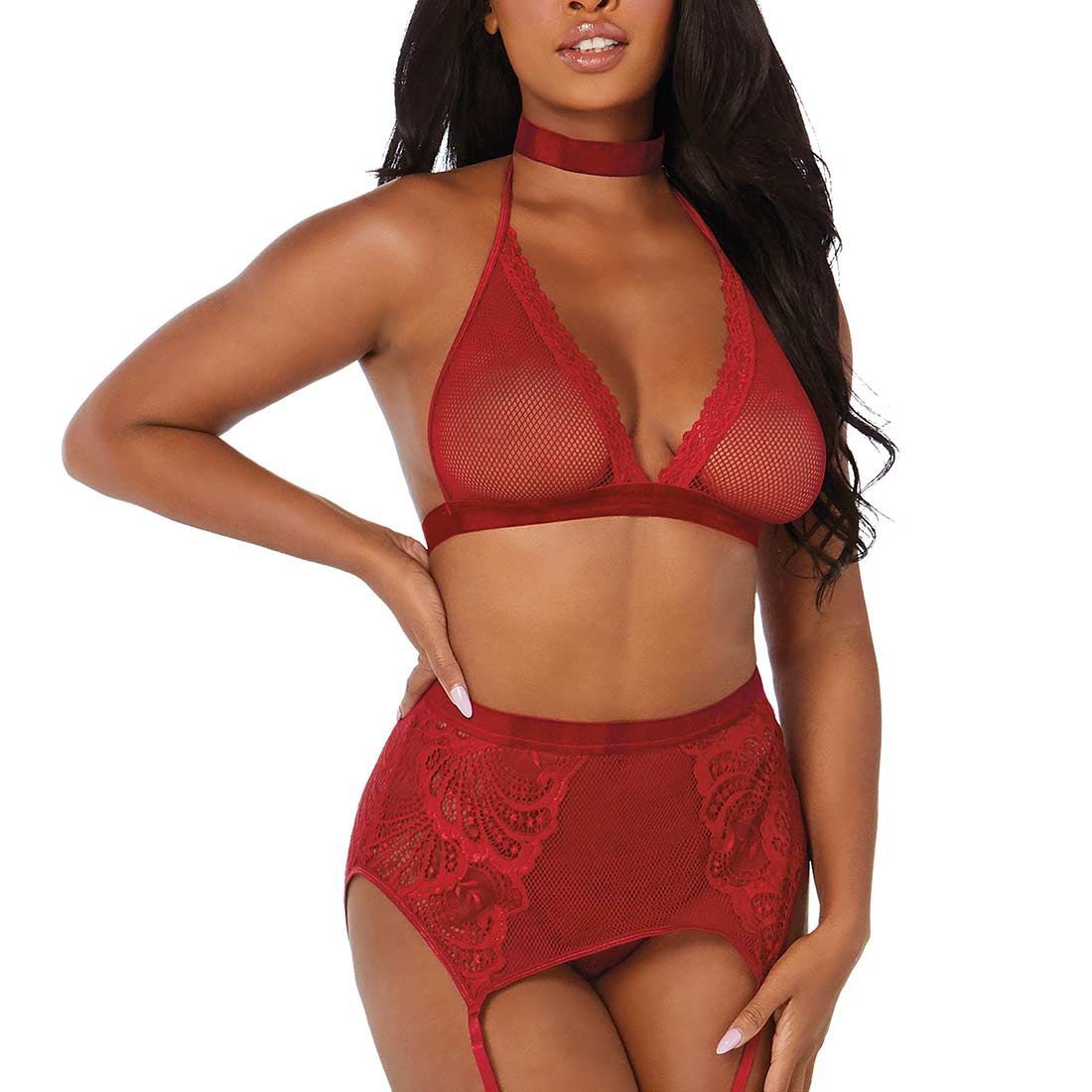 Dreamgirl sexy Straps-BH-Set S M L XL Neckholder Rückenfrei Rot Dessous "X7
