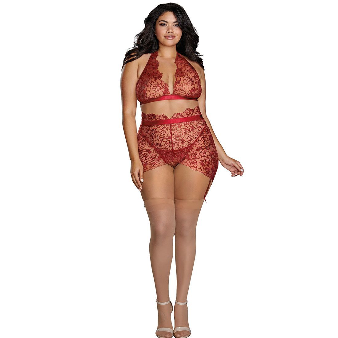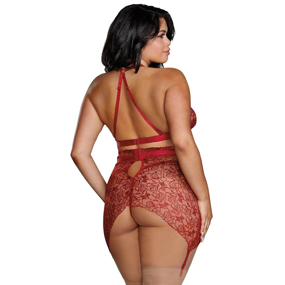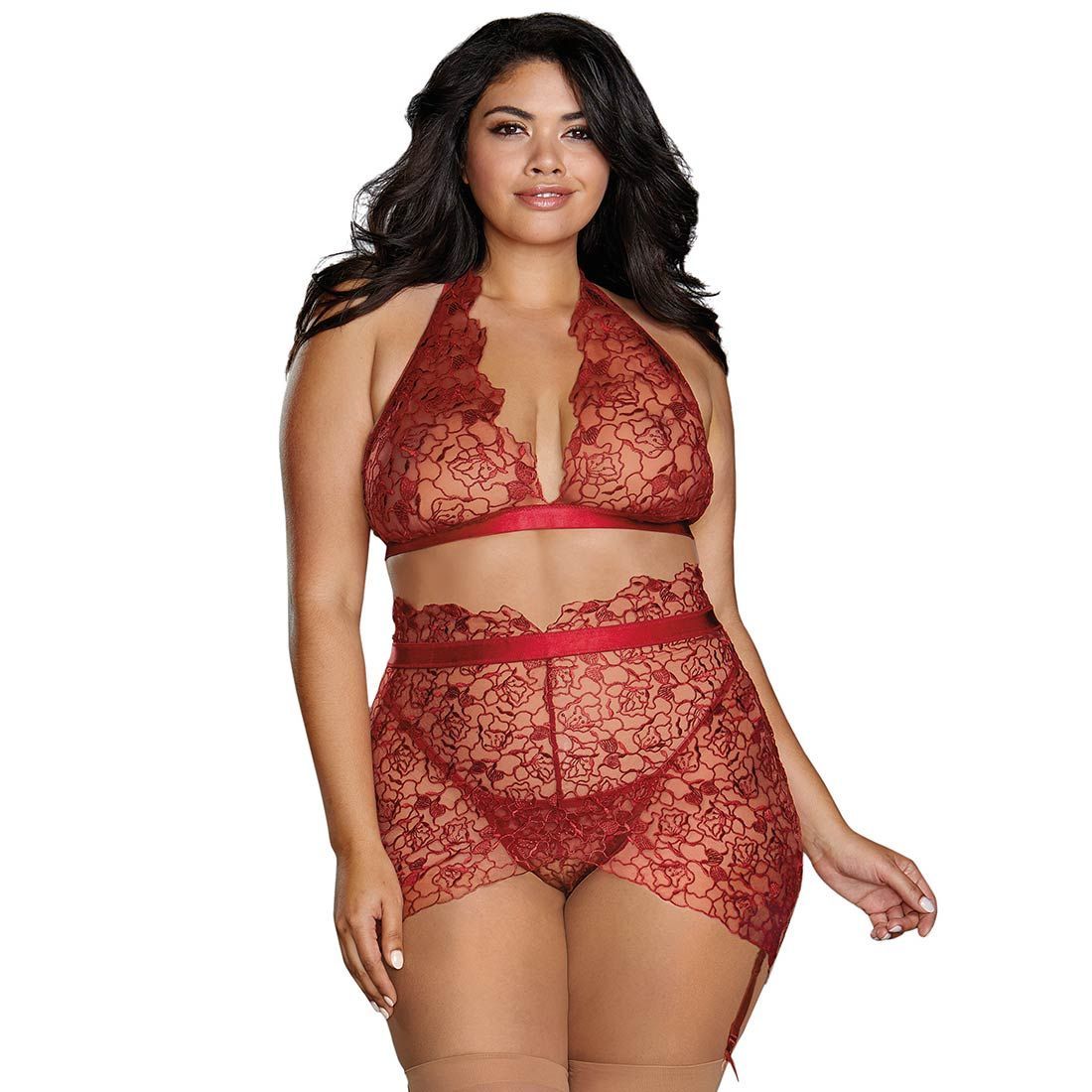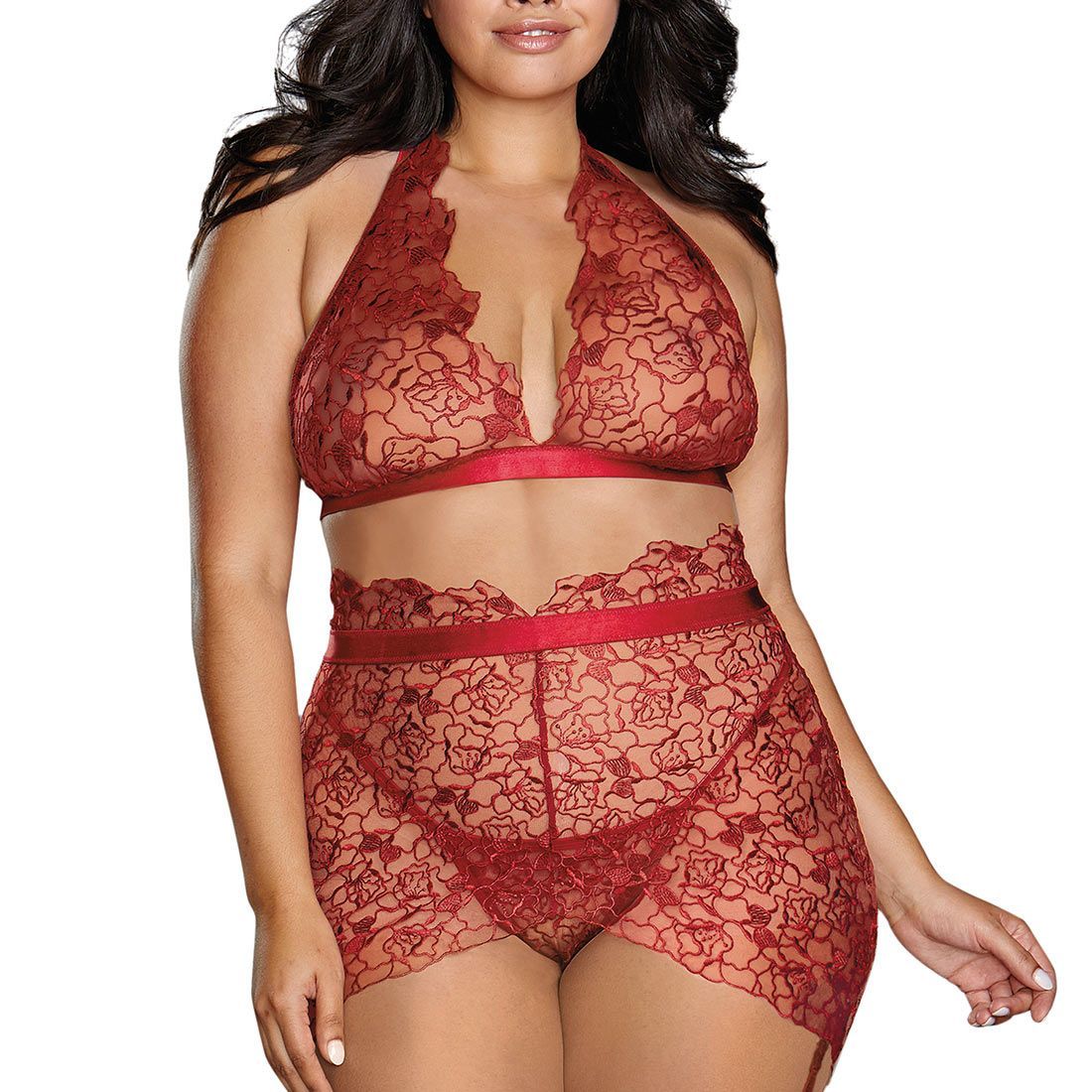 Dreamgirl Straps BH-Set XL 2XL 3XL Neckholder Spitze Rot Große Größe Dessous "X9