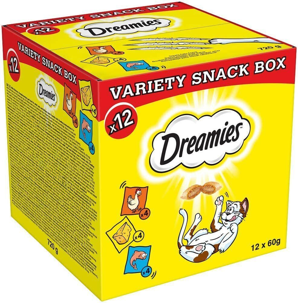 Dreamies Dreamies Katzensnacks Huhn Käse Lachs Snacks Féllung Katzenleckerli 12 x 60g
