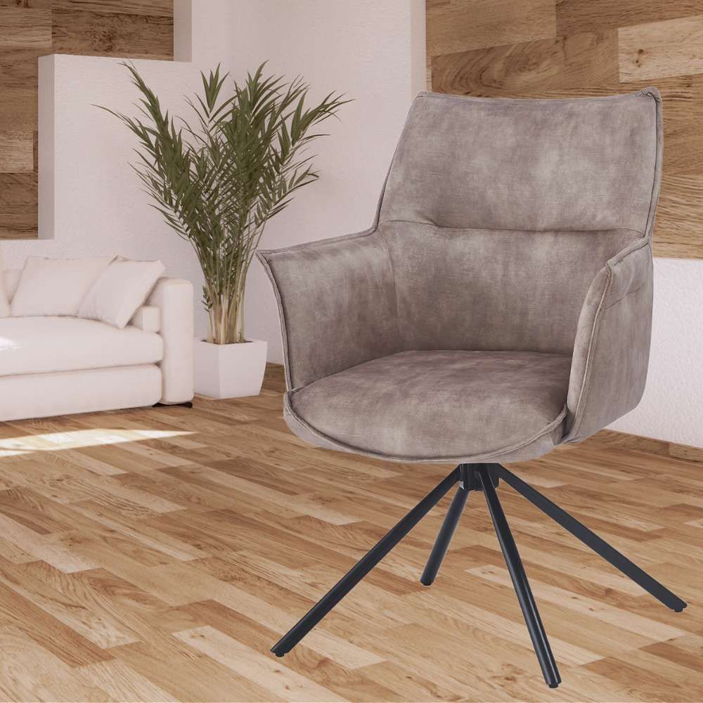 Drehbarer Design Stuhl Aurelia creme Samt schwarz Metallgestell 360°