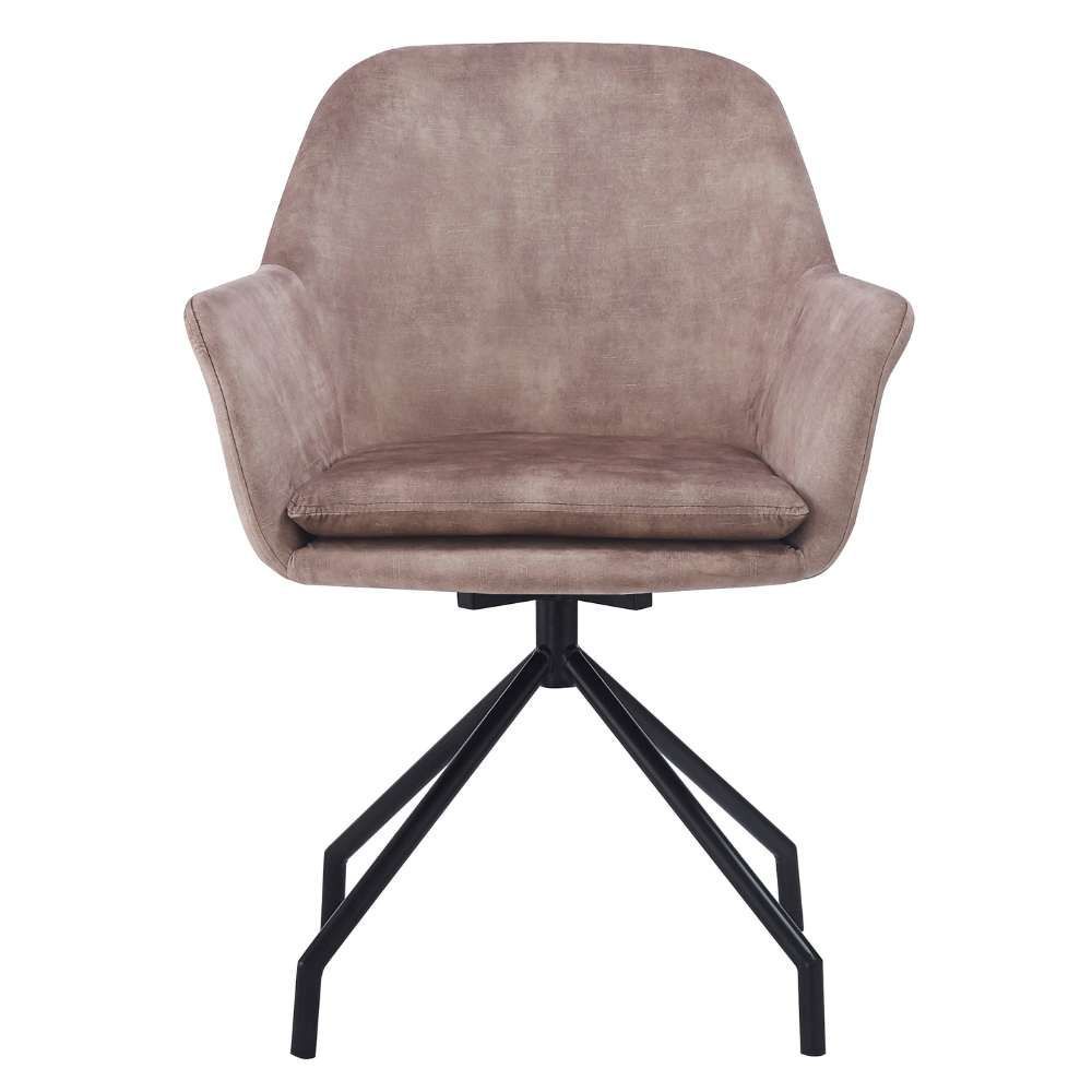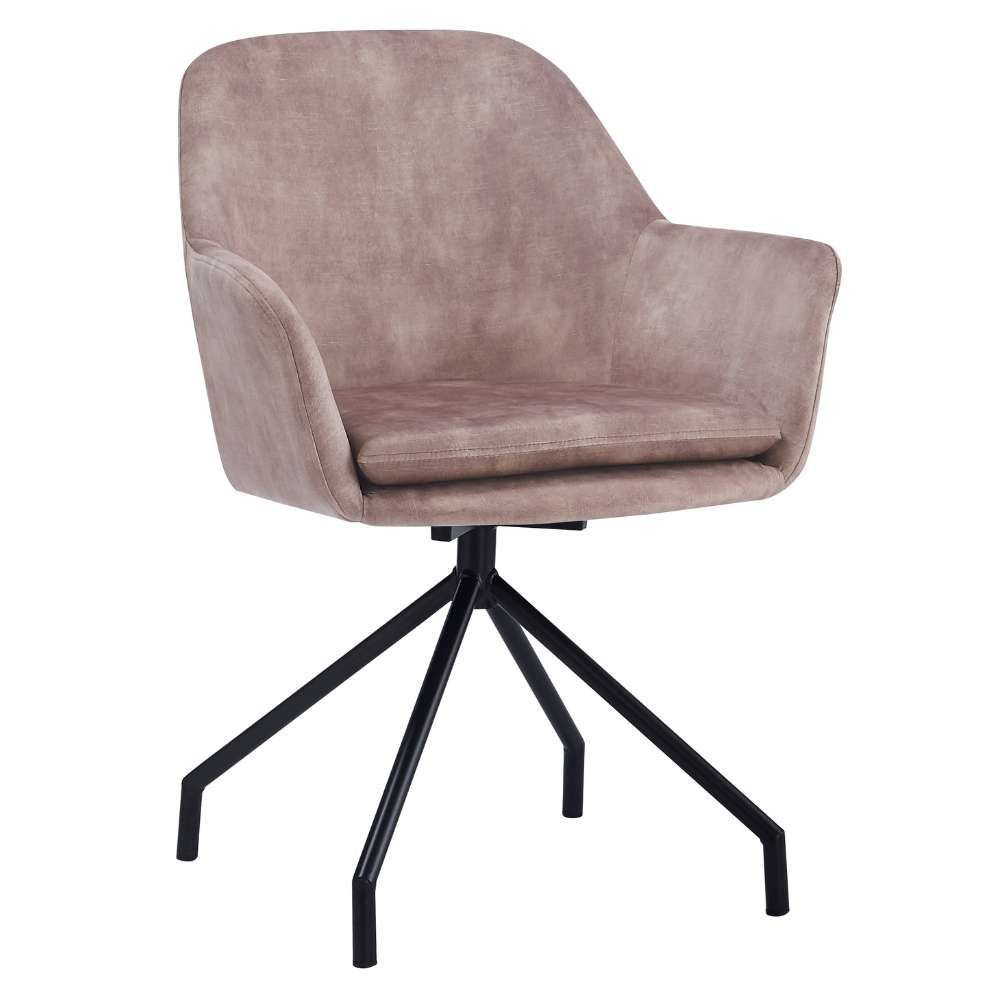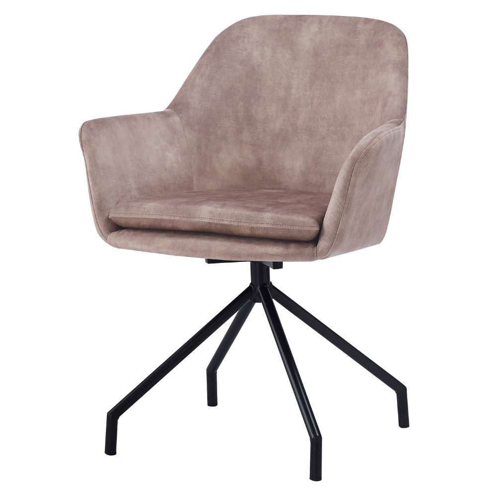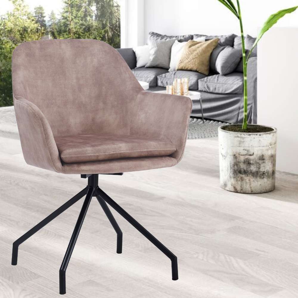 Drehbarer Stuhl JUDIKA creme Samt 360° mit Armlehne Metallgestell schwarz
