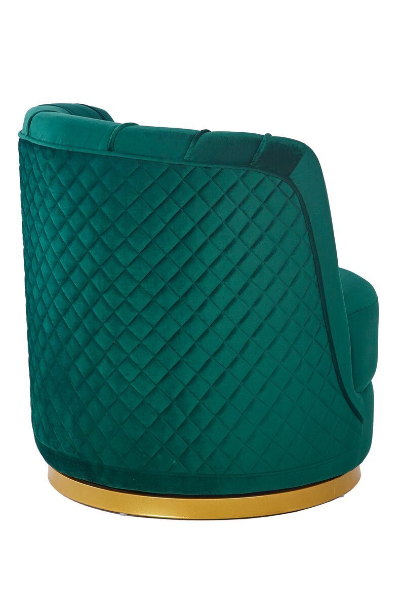 Drehsessel Grün 68 x 57 cm Samt mit Diamantsteppung und goldenem Sockel