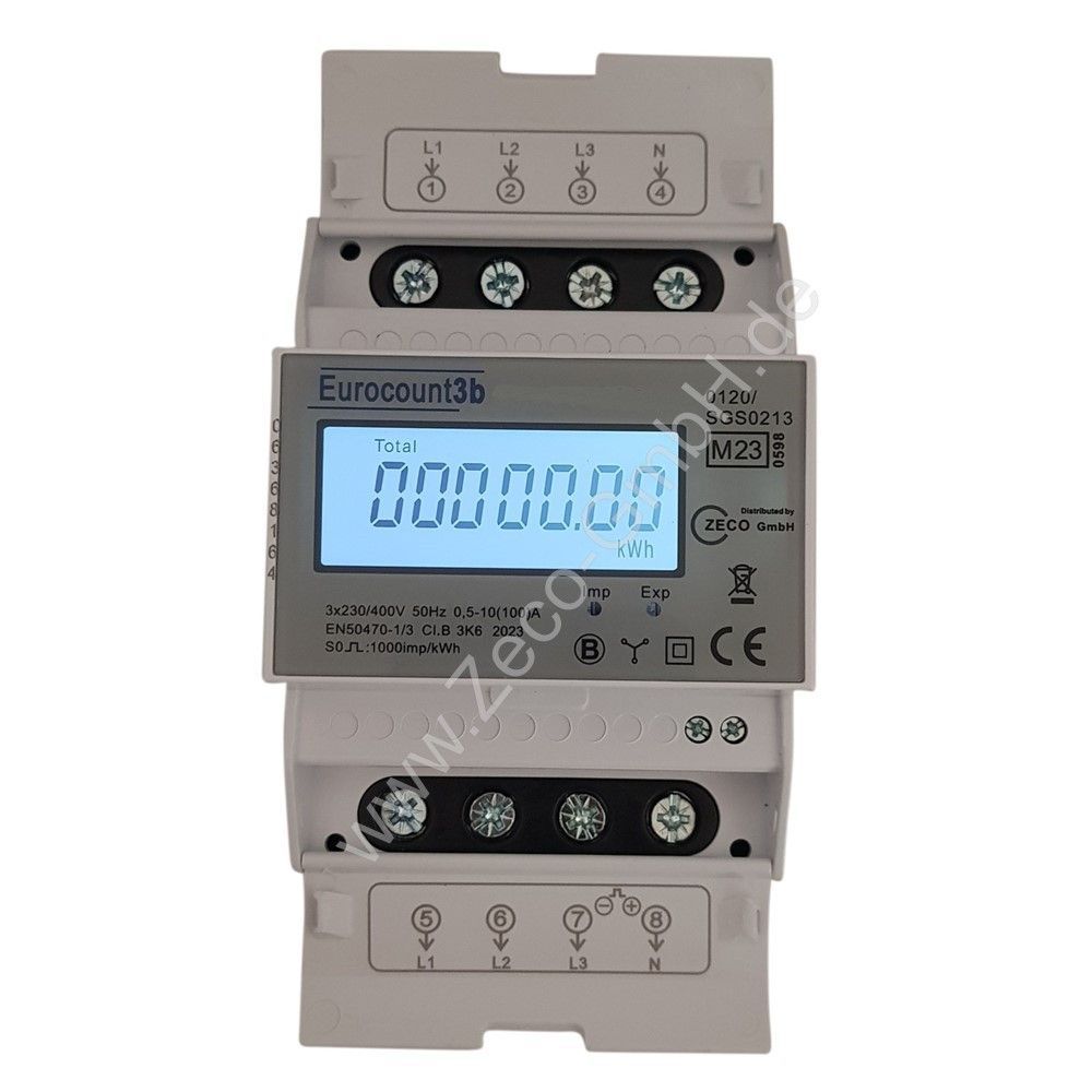 Drehstromzähler Stromzähler, 100A, MID 2023 geeicht, Energiezähler für Hutschiene