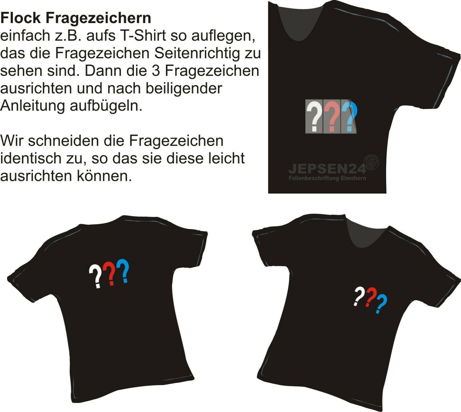 Drei Fragezeichen Flock zum aufbügeln ca 4x2,5cm S076 - Weiß Rot Blau