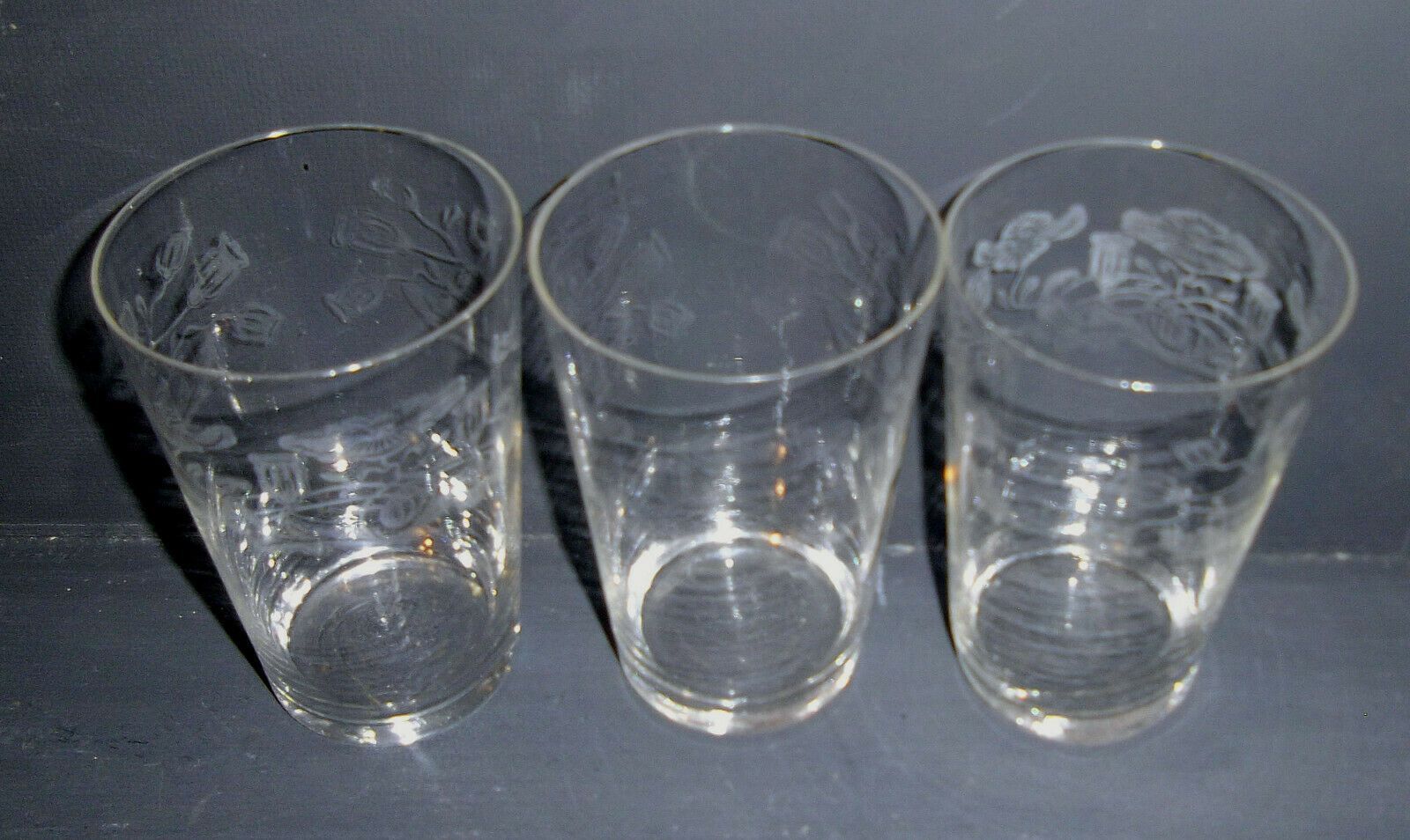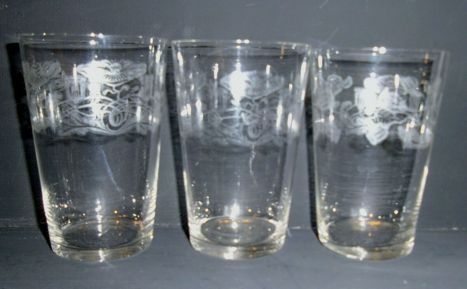 Drei Wassergläser um 1900 (Jugendstil). Ohne jeden Abplatzer. Sehr schöne Ätzung! Besonders elegantes Design. Maße: H 11 cm. Antikes am Deich - Inh: Oliver Kipp-Trense G M T Sprache erkennen Afrikaans Albanisch Arabisch Armenisch Aserbaidschanisch Baskisch Bengalisch Bosnisch Bulgarisch Burmesisch C