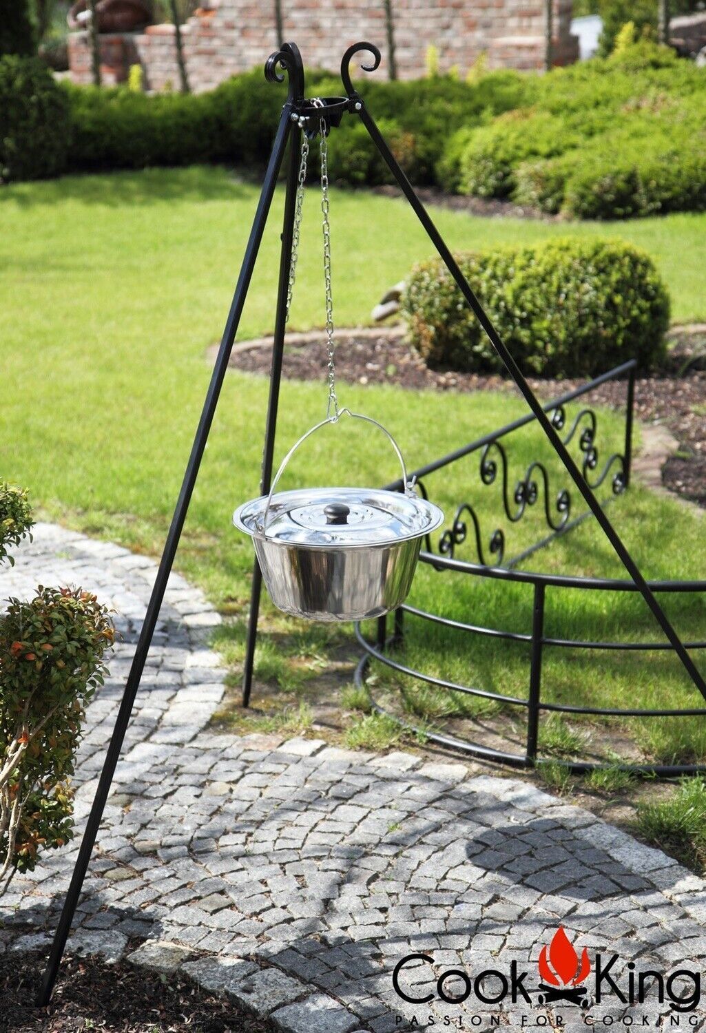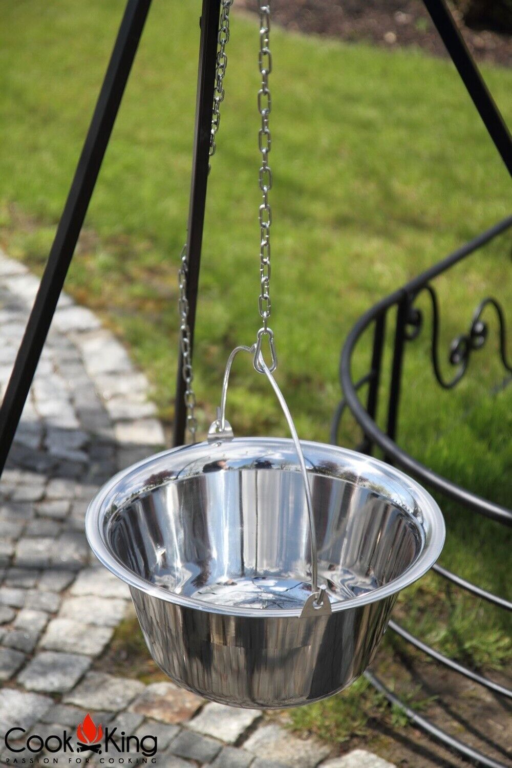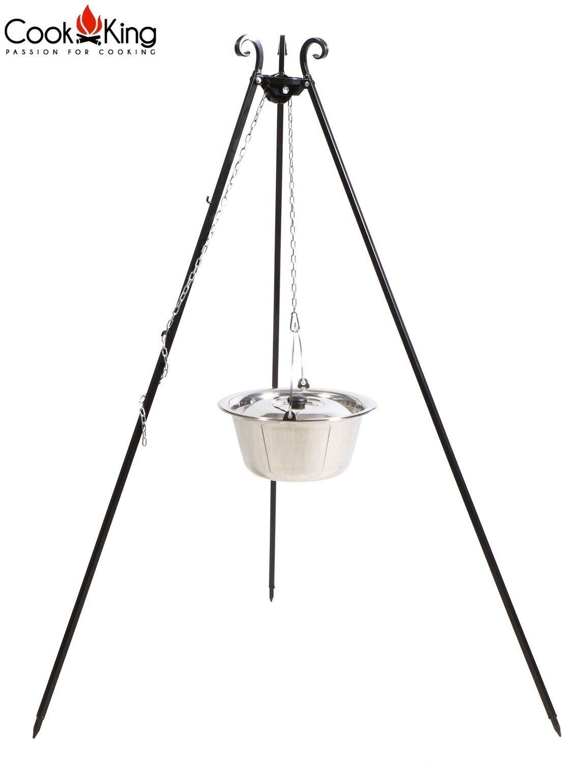 Dreibein H 180 cm mit Gulaschtopf 14 L aus Edelstahl Schwenkgrill Tripod Kochen