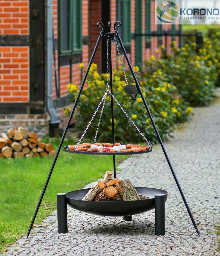 Dreibein Schwenkgrill mit Kurbel Rost 70 und Feuerschale Ø 80 im Set - Stahl