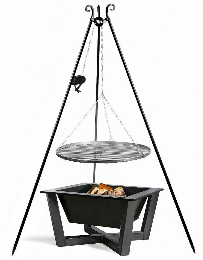 Dreibein Schwenkgrill Rostgröße 50 cm und Feuerschale 70 x 70 cm im Set - Stahl