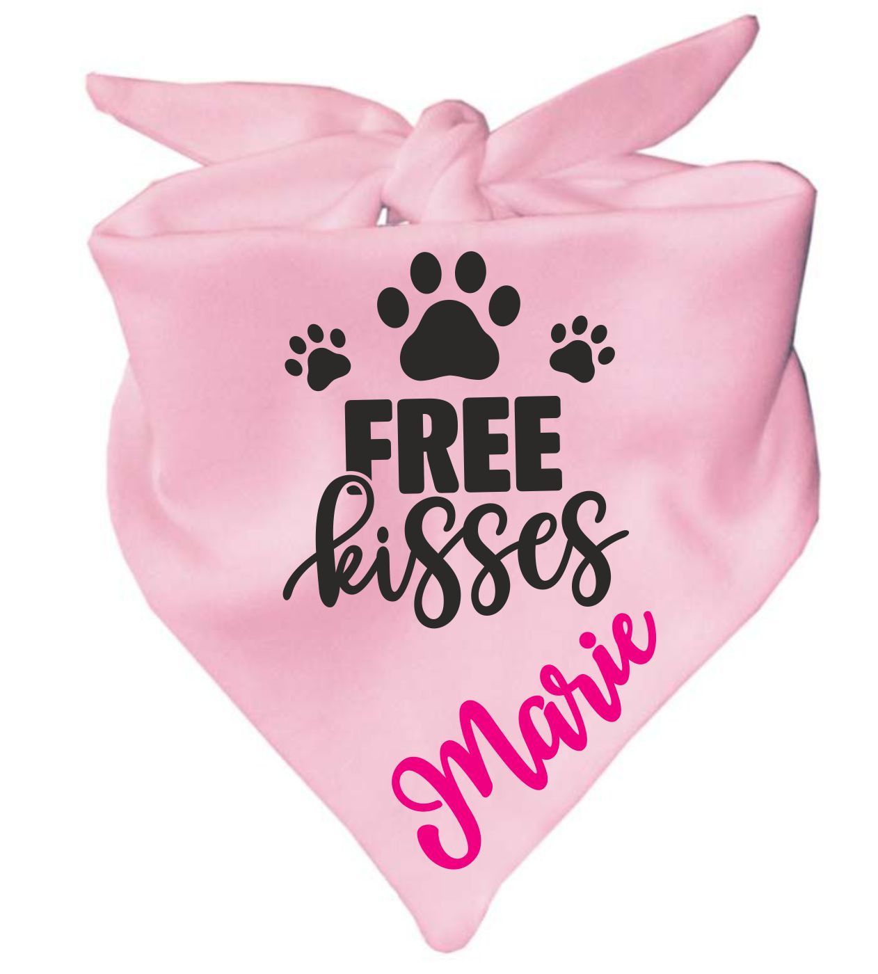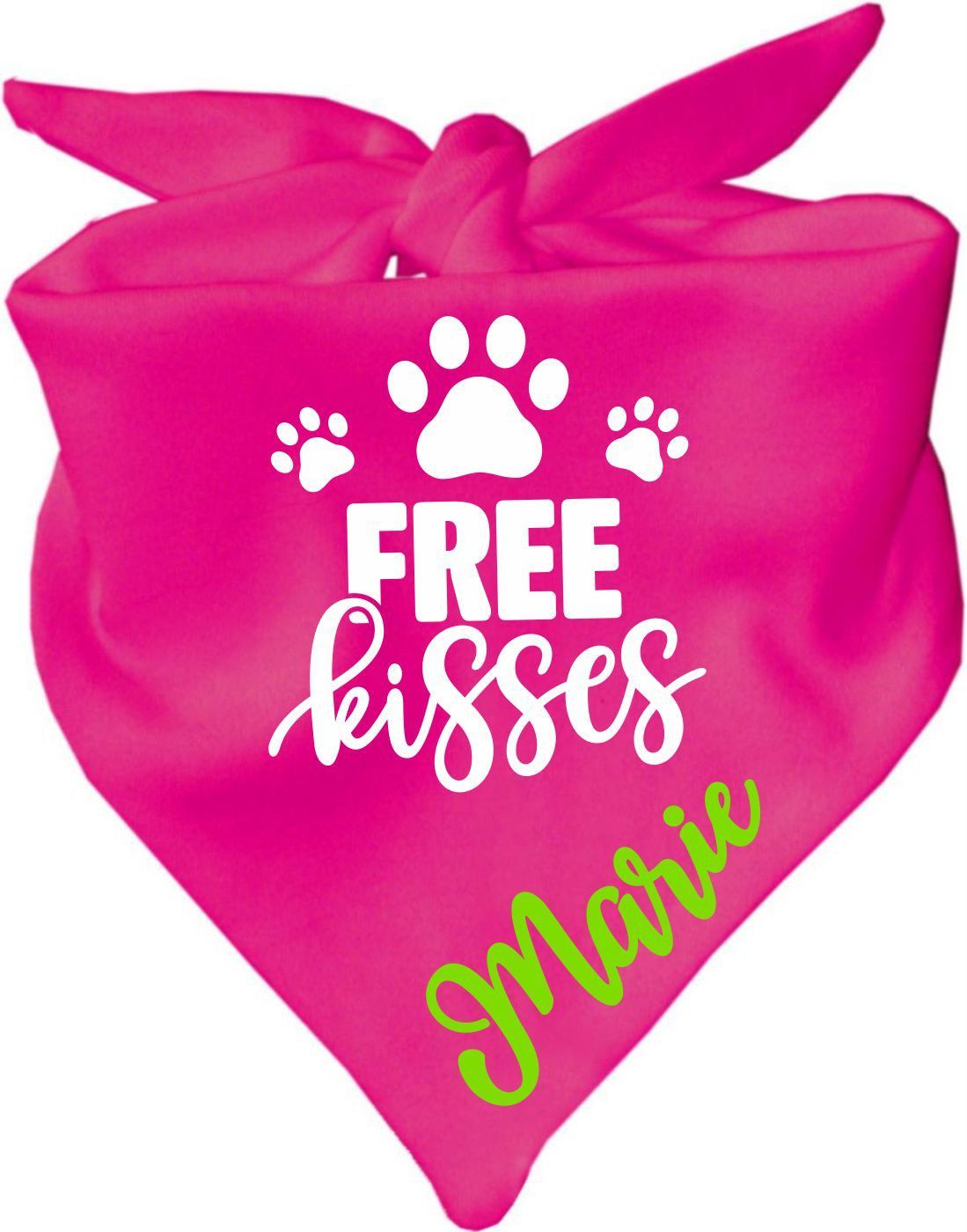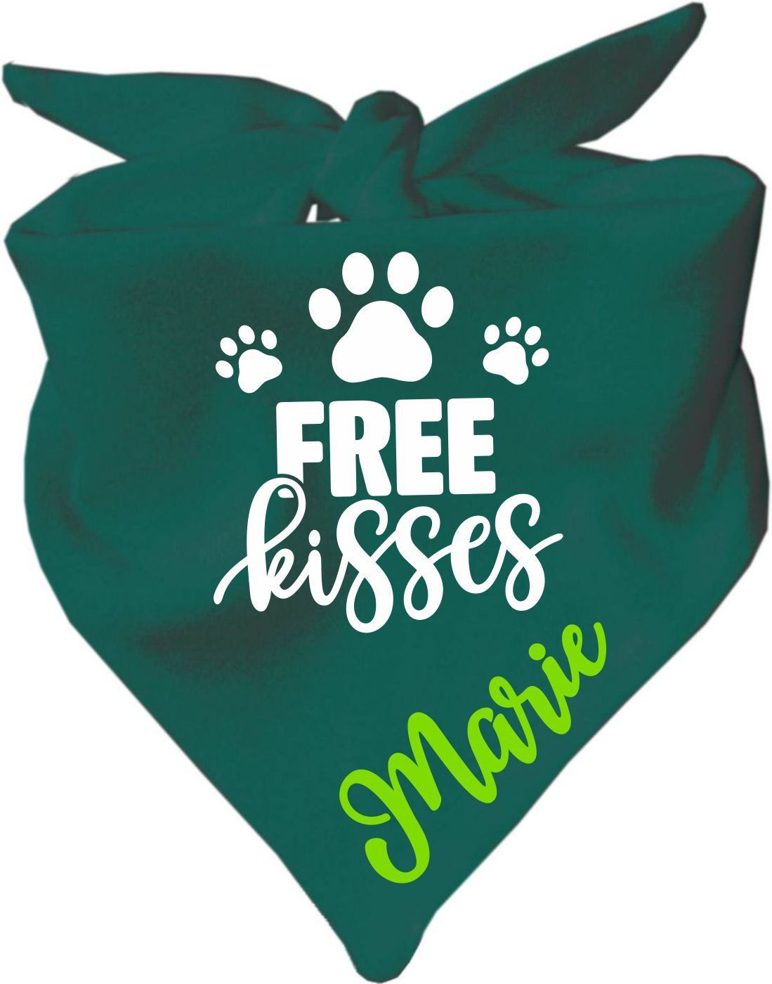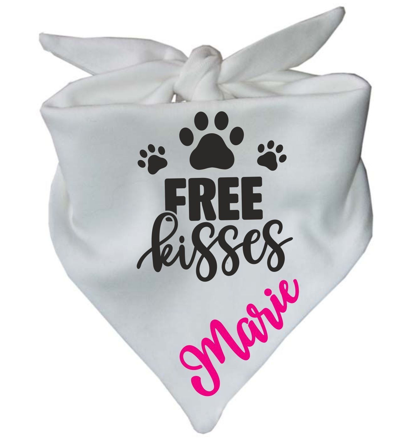 Dreieck Hundehalstuch personalisiert mit Namen und dem Design Free Kisses