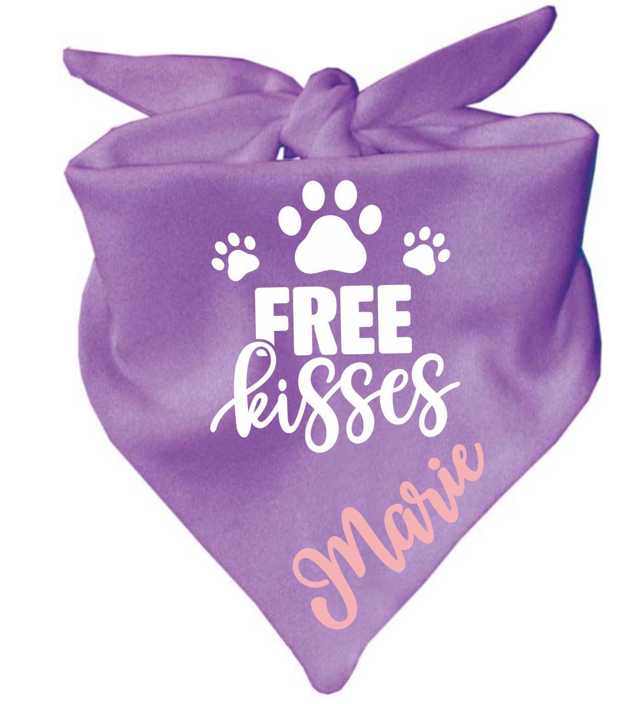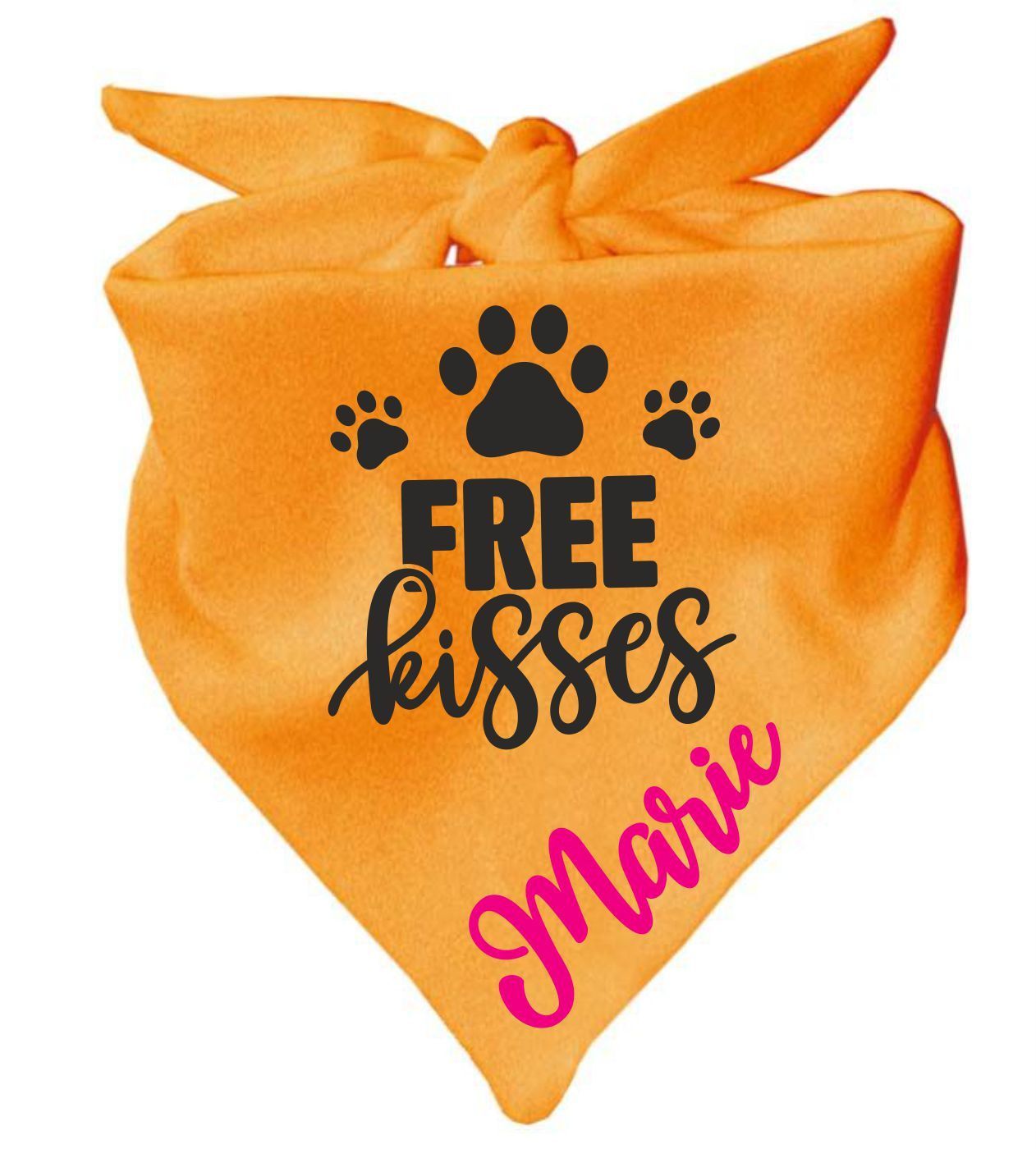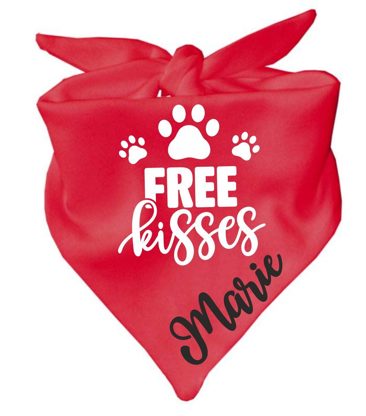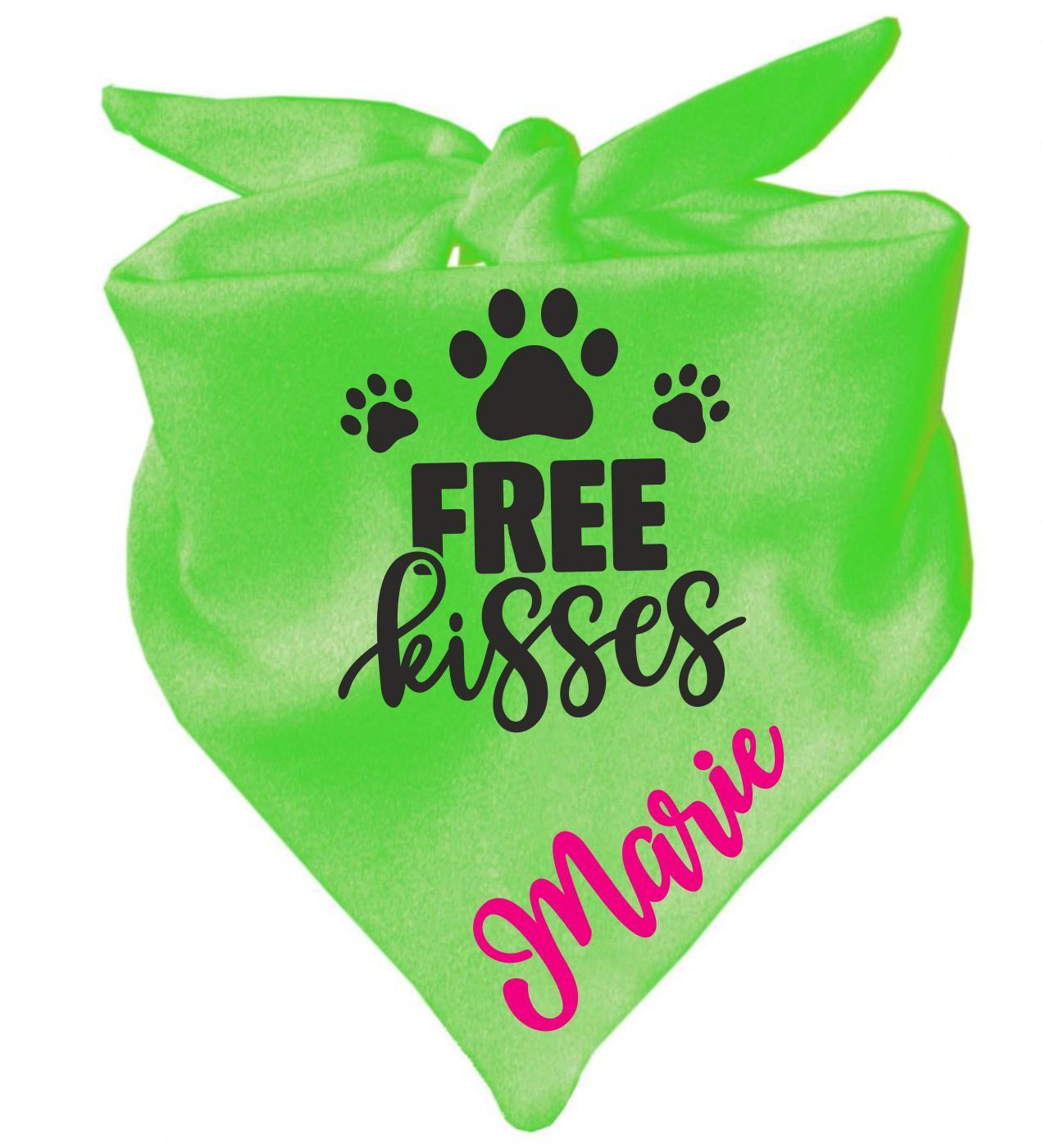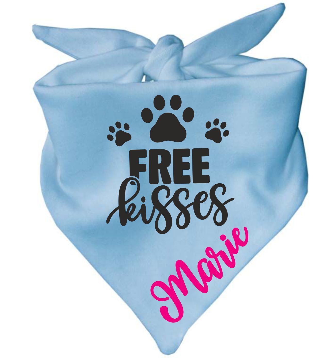 Dreieck Hundehalstuch personalisiert mit Namen und dem Design Free Kisses