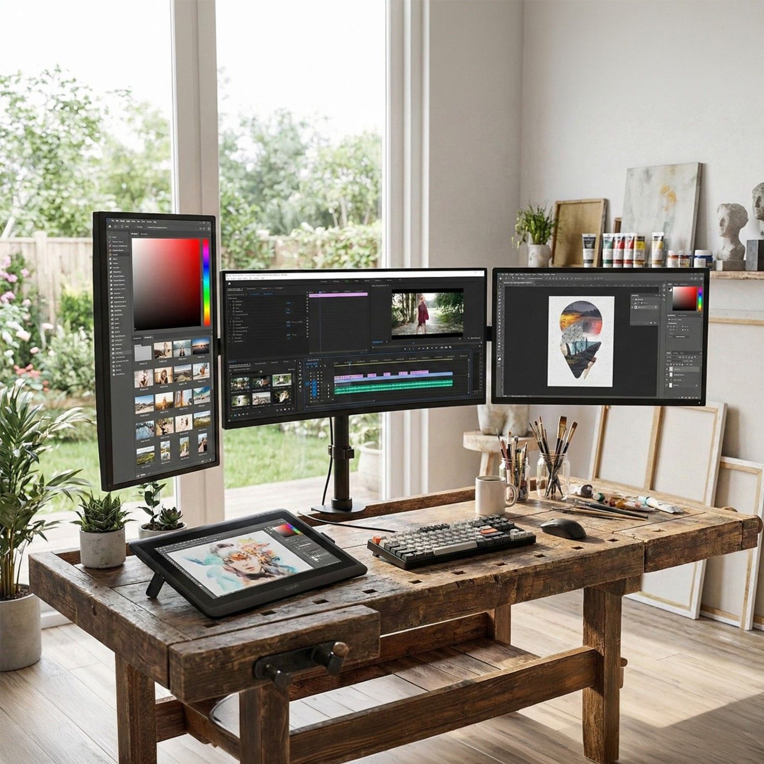 Dreifach Monitor Halterung Tischhalterung 360° für Homeoffice 13-27 Zoll 8kg