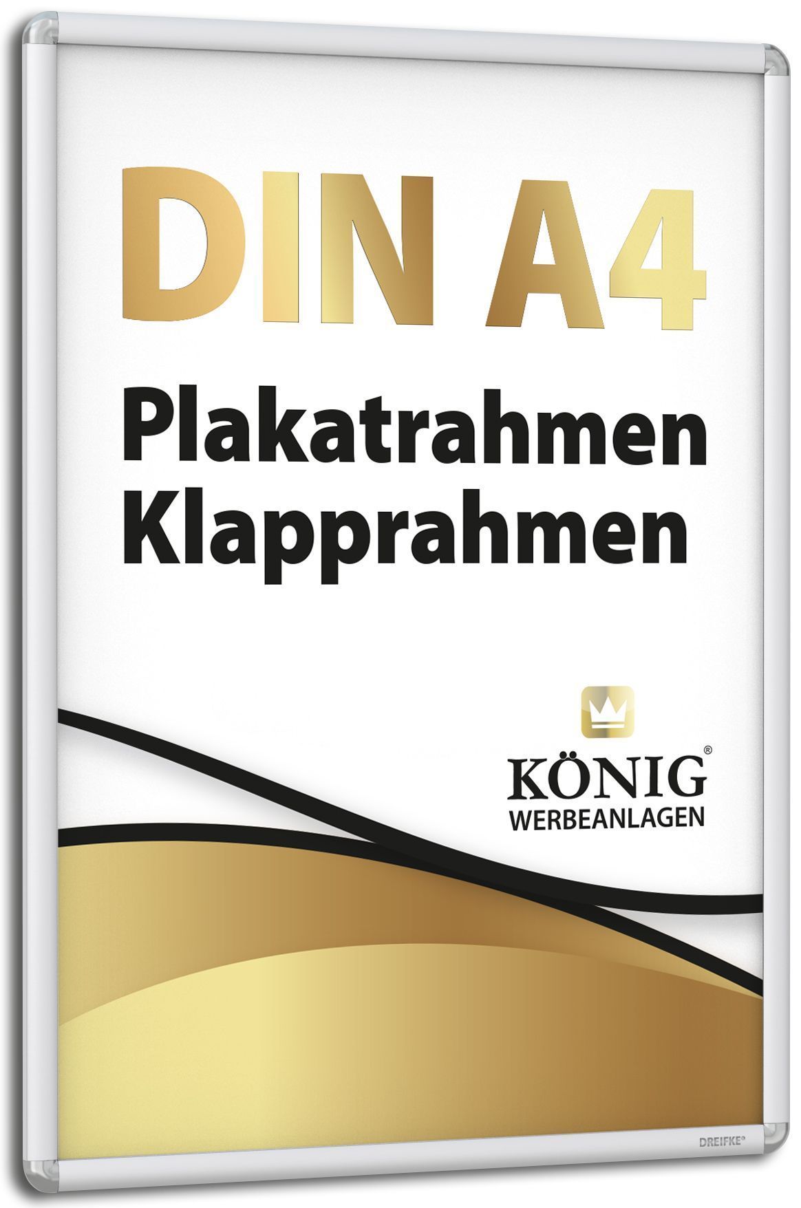 Dreifke® Plakatrahmen DIN A4 | abgerundete Ecken | 25mm Alu Profil, silber | inkl en