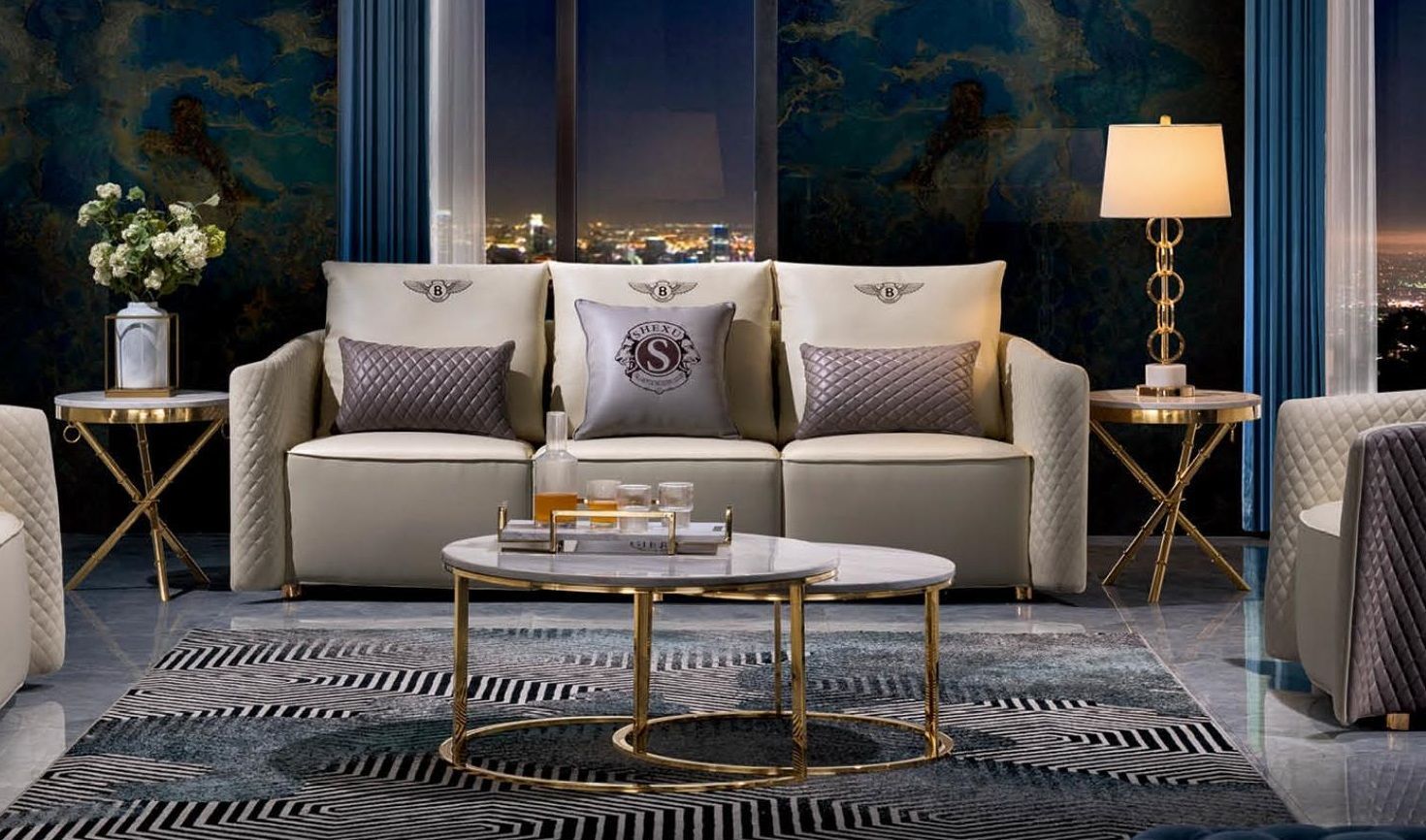 Dreisitzer Couch Polster Design Sofa 3er Sitz Sofas Zimmer Möbel Beige Moderne