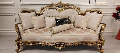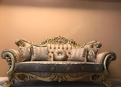Chesterfield Barock Couch Möbel Sofa Couchen Stoff Gold Dreisitzer