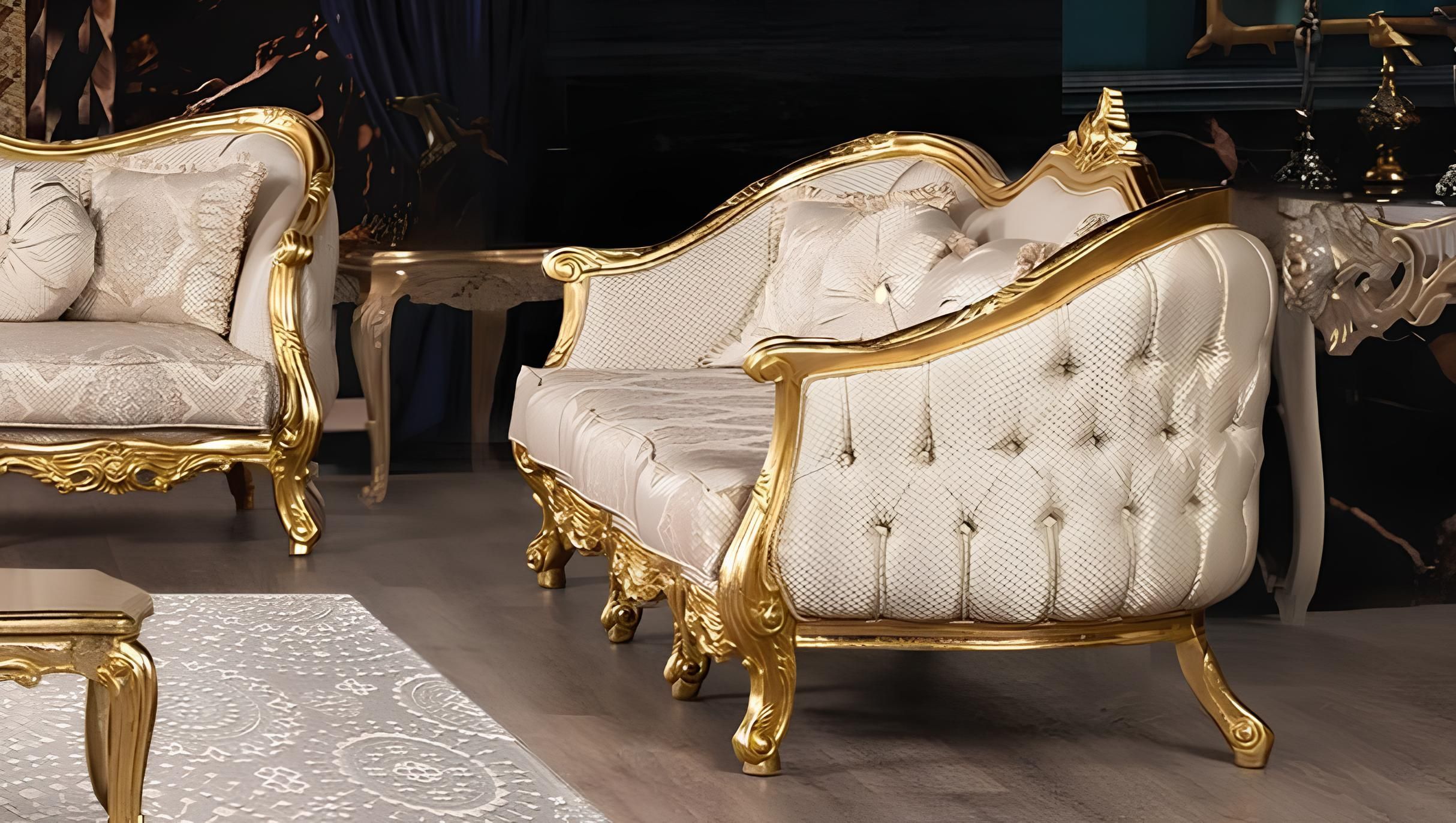 Dreisitzer Sofa 3 Sitzer Barock Rokoko Sofa Sofas Sessel Sitz Stoff Stil couch