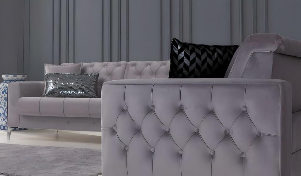 Modern Sofa Komplett Sofa Dreisitzer mit Zweisitzer Couch Sitzmöbel Chesterfield