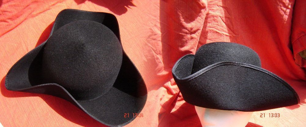 . Kostüme, Uniform, Rollenspiel, LARP, Pirat , Seefahrt, Störtebeker Sie bieten auf einen offenen Dreispitz der Kopf ist ca 13cm hoch der Rand angeschlagen ca 10 cm aus reiner Wolle, absolut wetterfest , regenbeständig !!! Qualität für den Aussenbereich 100% Wolle in Farbe schwarz sehr schön ausgerü