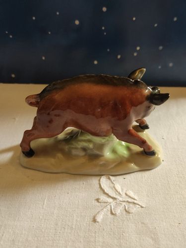 Sie erhalten eine sehr schöne Figur Wildschwein Eber der Manufaktur Potschappel Dresden mit einer sehr schönen Handmalerei Hergestellt um 1940-50. Die Figur ist gut erhalten. Leichte Gebrauchsspuren bitte sehen sie sich vor Gebotsabgabe die Bilder an sie sind Bestandteil des Angebots. Wir sind ein T