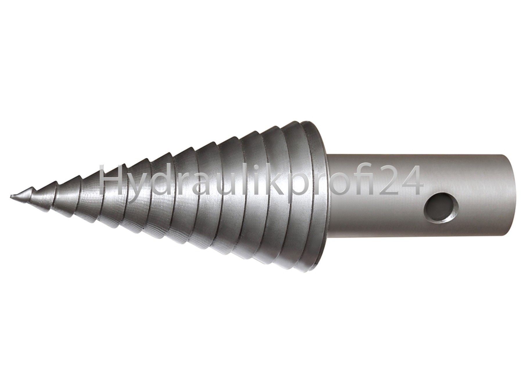 Drillkegel Kegelspalter für den Anbau an einen 3 Tonnen Rotator mit Aufnahme Ø 50 mm Welle und 25 mm Querbohrung mit gehärteter Austauschspitze Der starke Drillkegel für Bagger Radlader Kräne Frontlader Rückewagen und sonstige Anbaugeräte Gesamtlänge 250 mm Durchmesser 120 mm Drillkegel aus 2