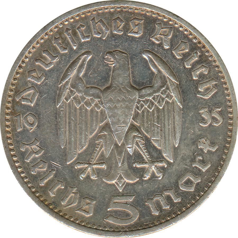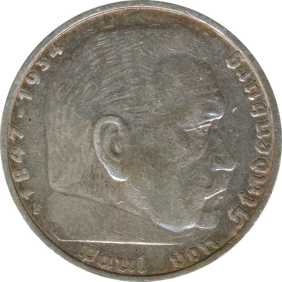 Drittes Reich 5 Mark 1935 F Paul von Hindenburg Silber*