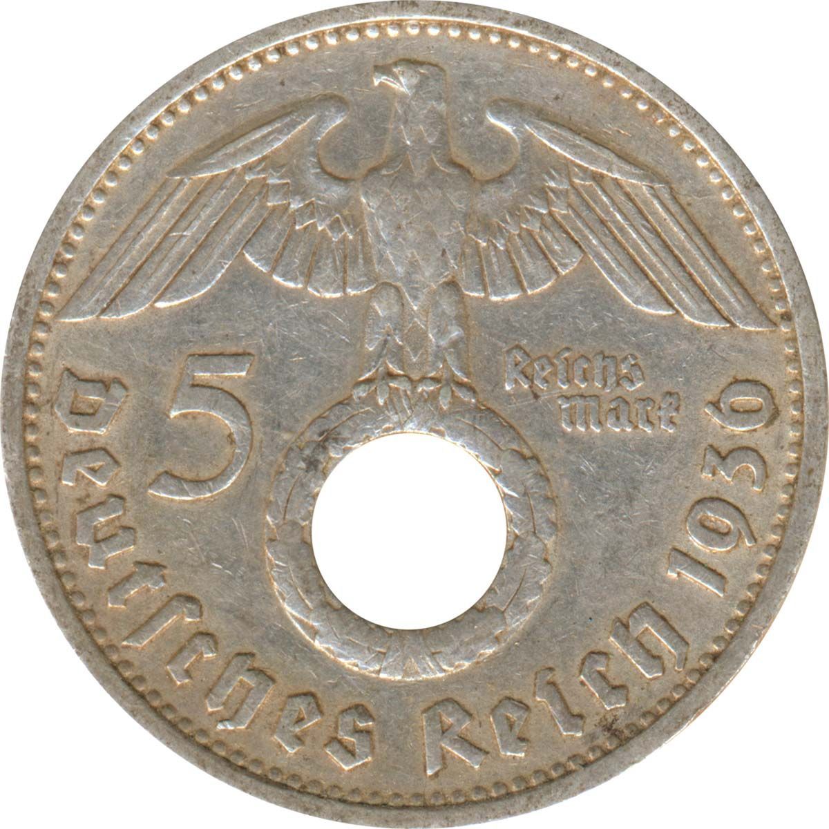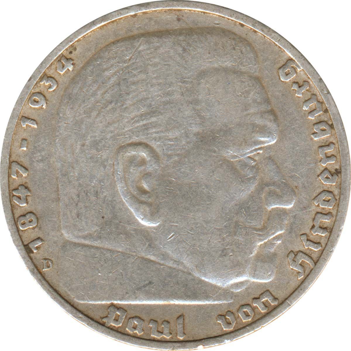 Drittes Reich 5 Mark 1936 D Paul von Hindenburg J. 367 Silber*