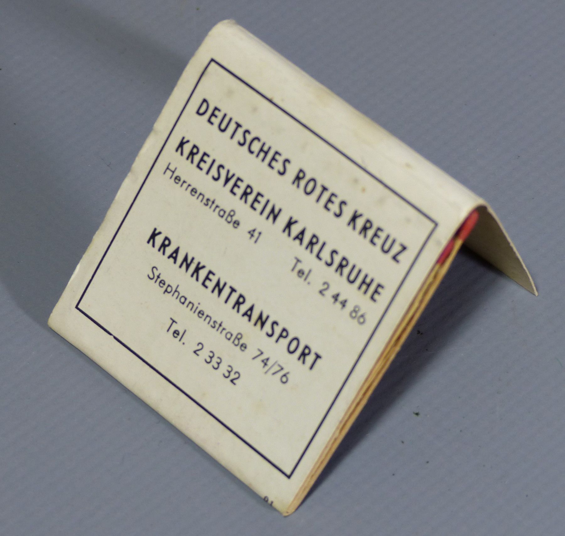 DRK Rotes Kreuz Kreisverein Karlsruhe Streichhölzer Streichholzbriefchen 50er Jahre