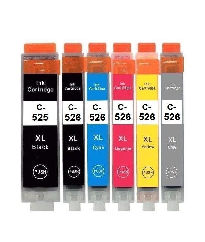 Druckerpatronen PGI-525 und CLI-526 kompatibel mit den Druckern Canon Pixma IP4850, IP4950 Canon Pixma IX6550 Canon Pixma MG5140, MG5150, MG5240, MG5250, MG5340, MG5350, MG6150, MG6250, MG8150, MG8240, MG8250 Canon Pixma MX715, MX885, MX895 Sie haben die Auswahl aus kompatiblen Patronen PGI-525 schw