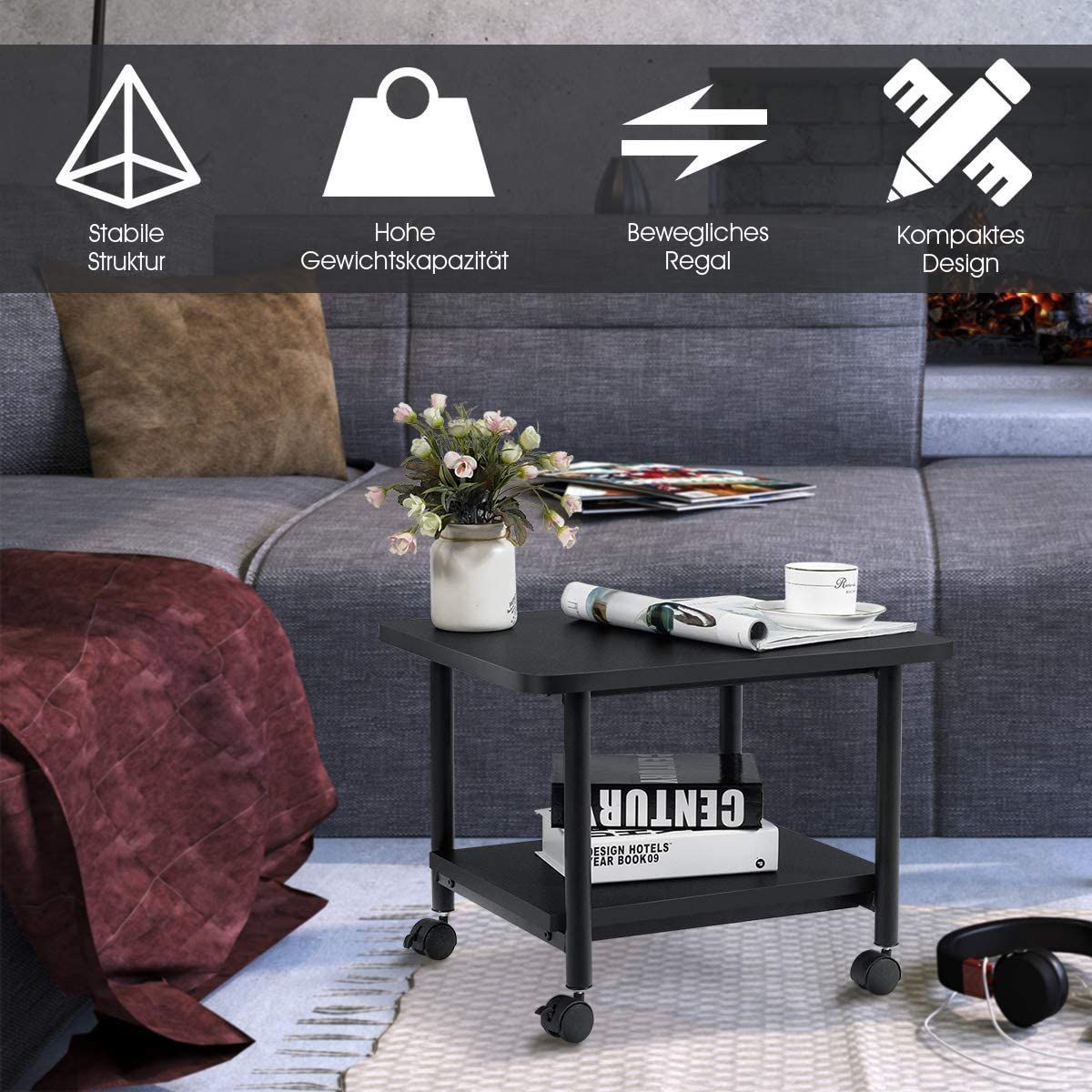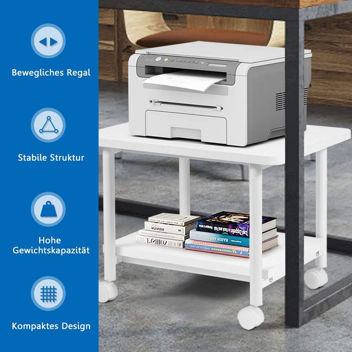 Druckerständer rollbar, Bürocontainer Multifunktionswagen Druckerablage 2 Ebenen